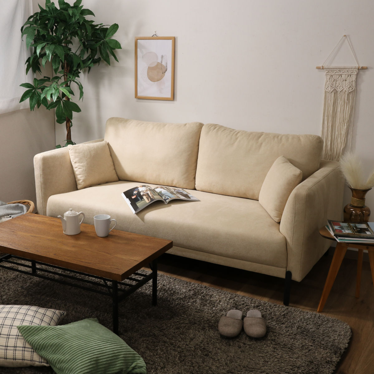 ポケットコイルが入った座面はしっかりとした座り心地で、シリコンフィル入りの背もたれは柔らかく腰当たりの良いソファです。