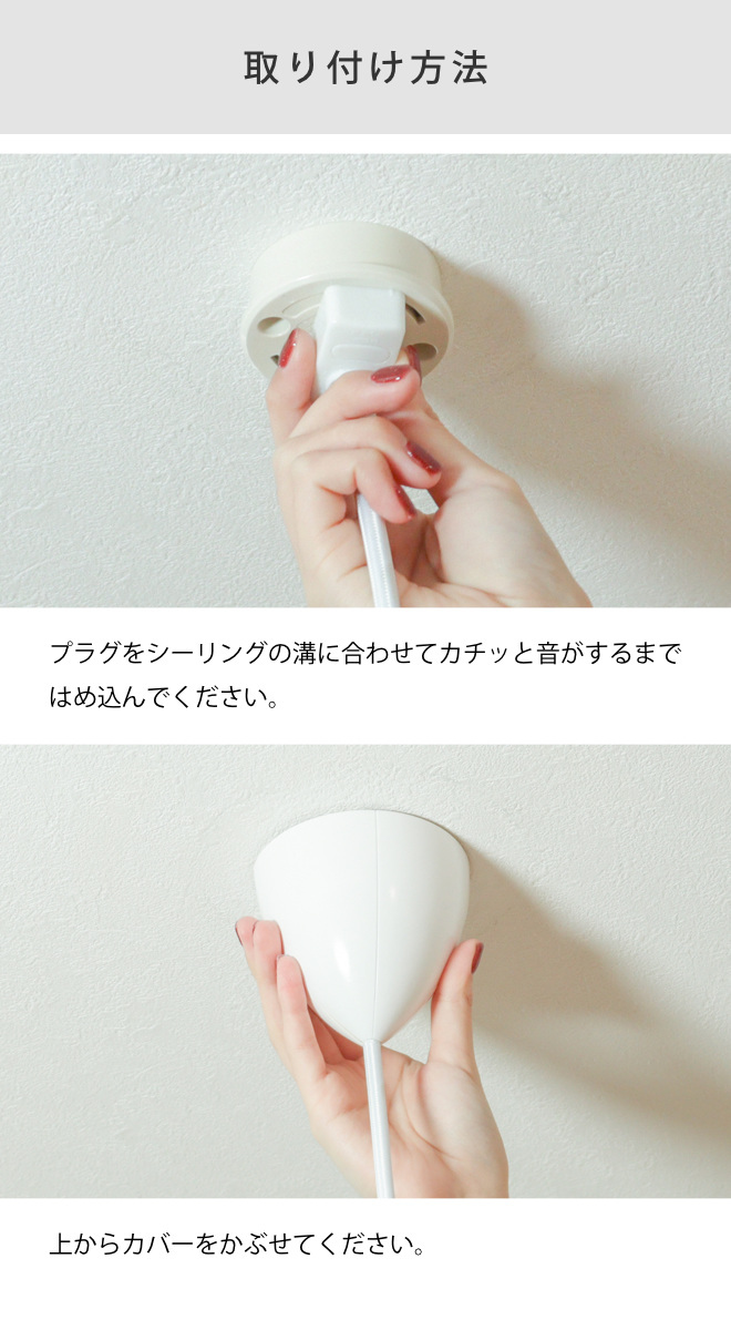 ※コードの長さを変更することはできかねます。付属のシーリングカップの中にコードをまとめて入れることで10~15cm程度短くすることは可能です。