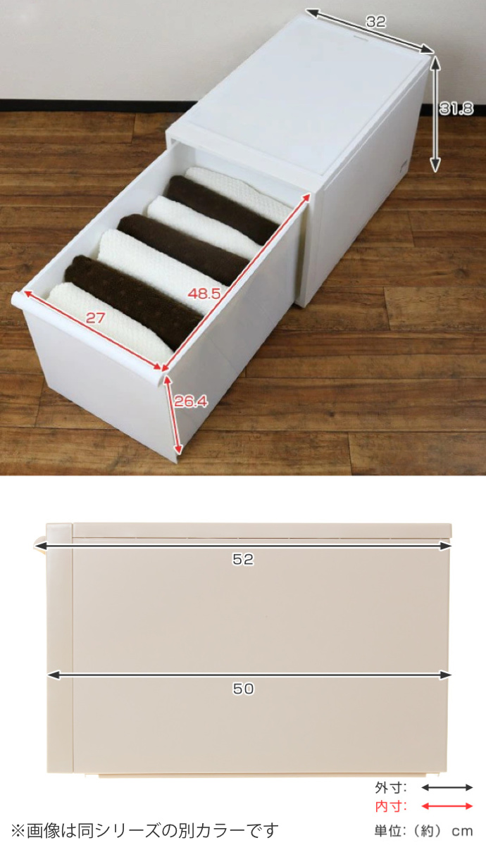 引き出し内寸:約 幅27×奥行48.5×高さ26.4(cm)