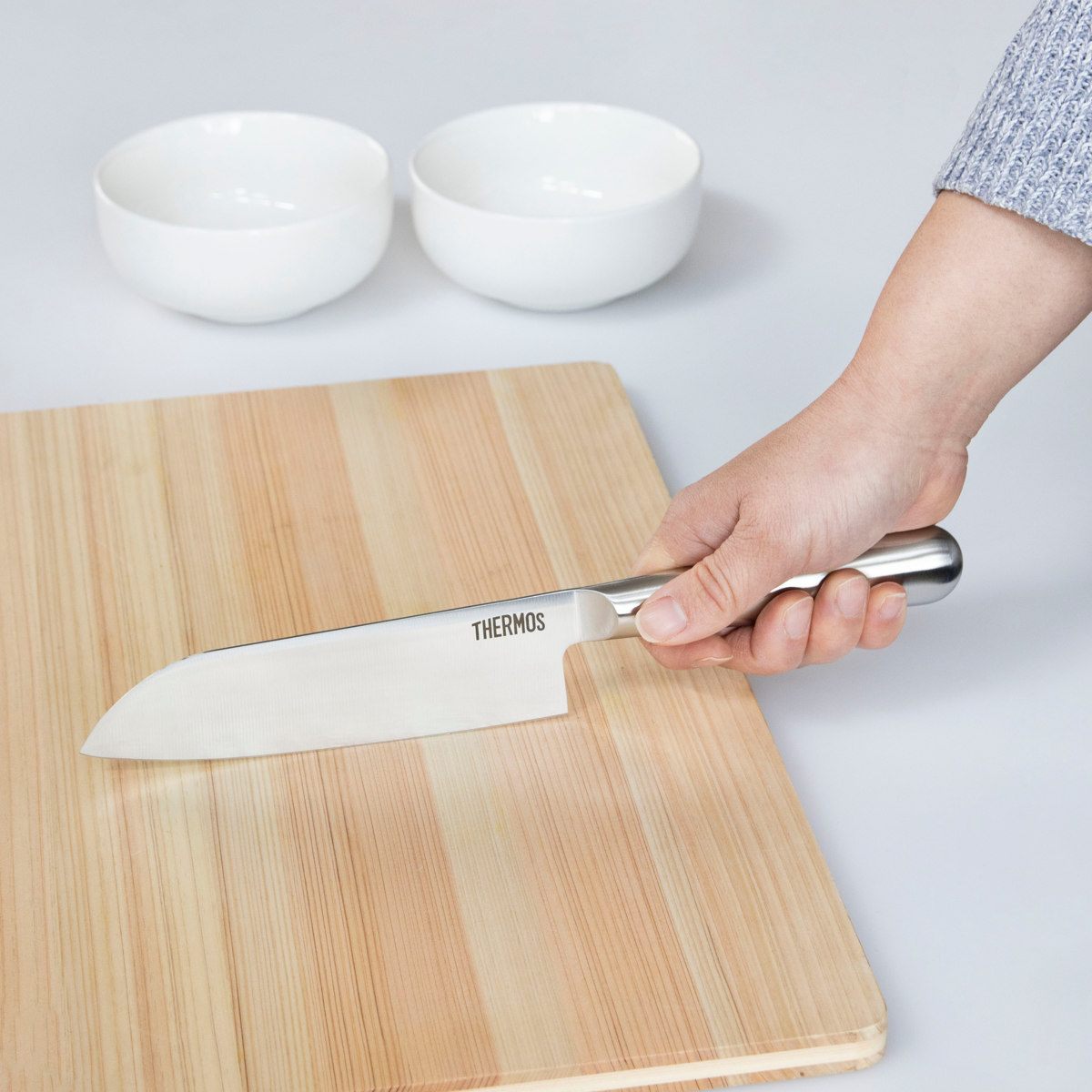見た目にも美しい一体型のハンドルですが、ほどよい重量感と握りやすさも兼ね備えています。力を入れやすく、トントンと軽い切り心地で食材をカットできます。