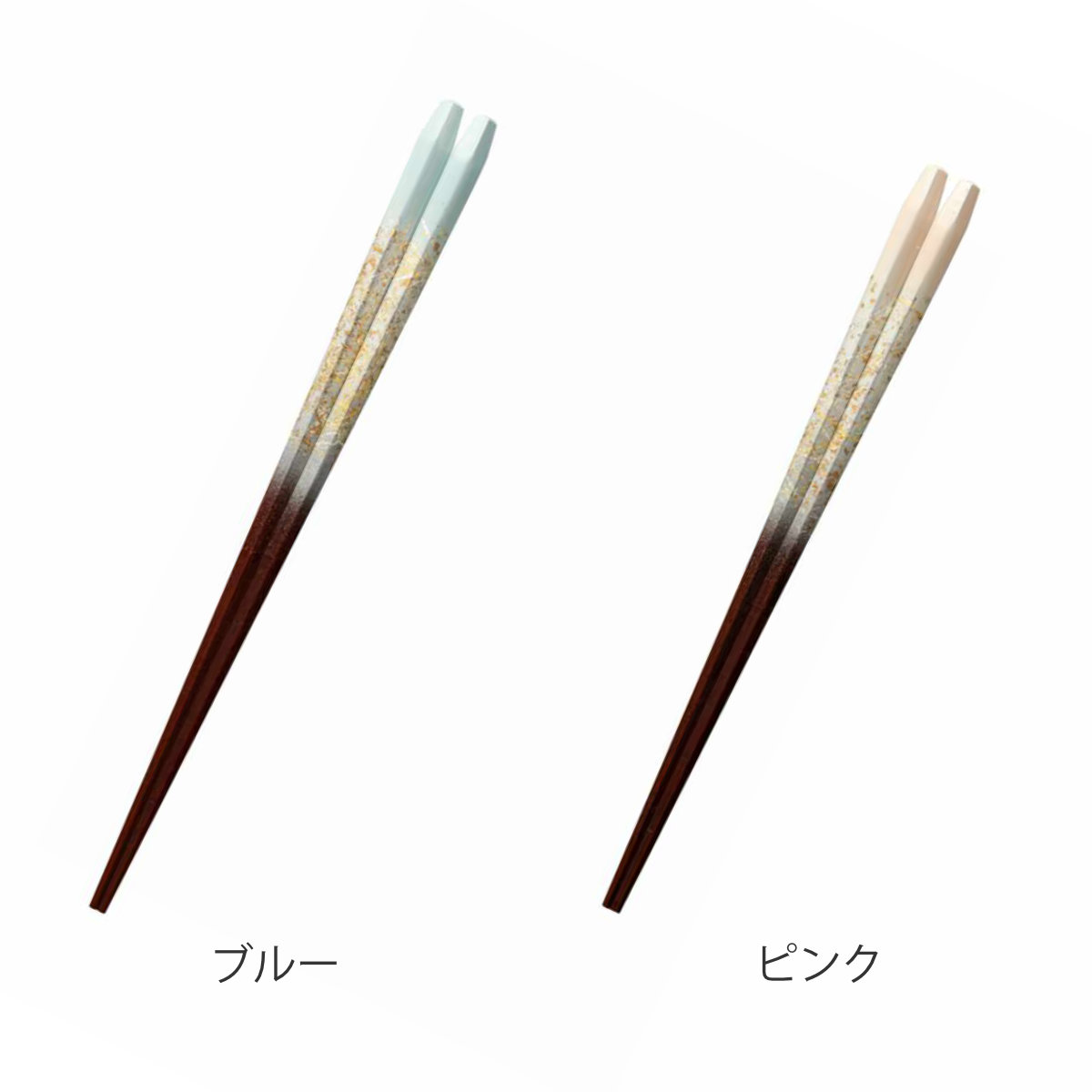 箸 21cm 23cm 一双 京都金彩 木製 ( お箸 はし おはし ハシ カトラリー 若狭塗り 日本製 天然木 自宅用 普段使い 持ちやすい 大人 おしゃれ 贈り物 プレゼント ギフト 高級 ) 【ブルー】