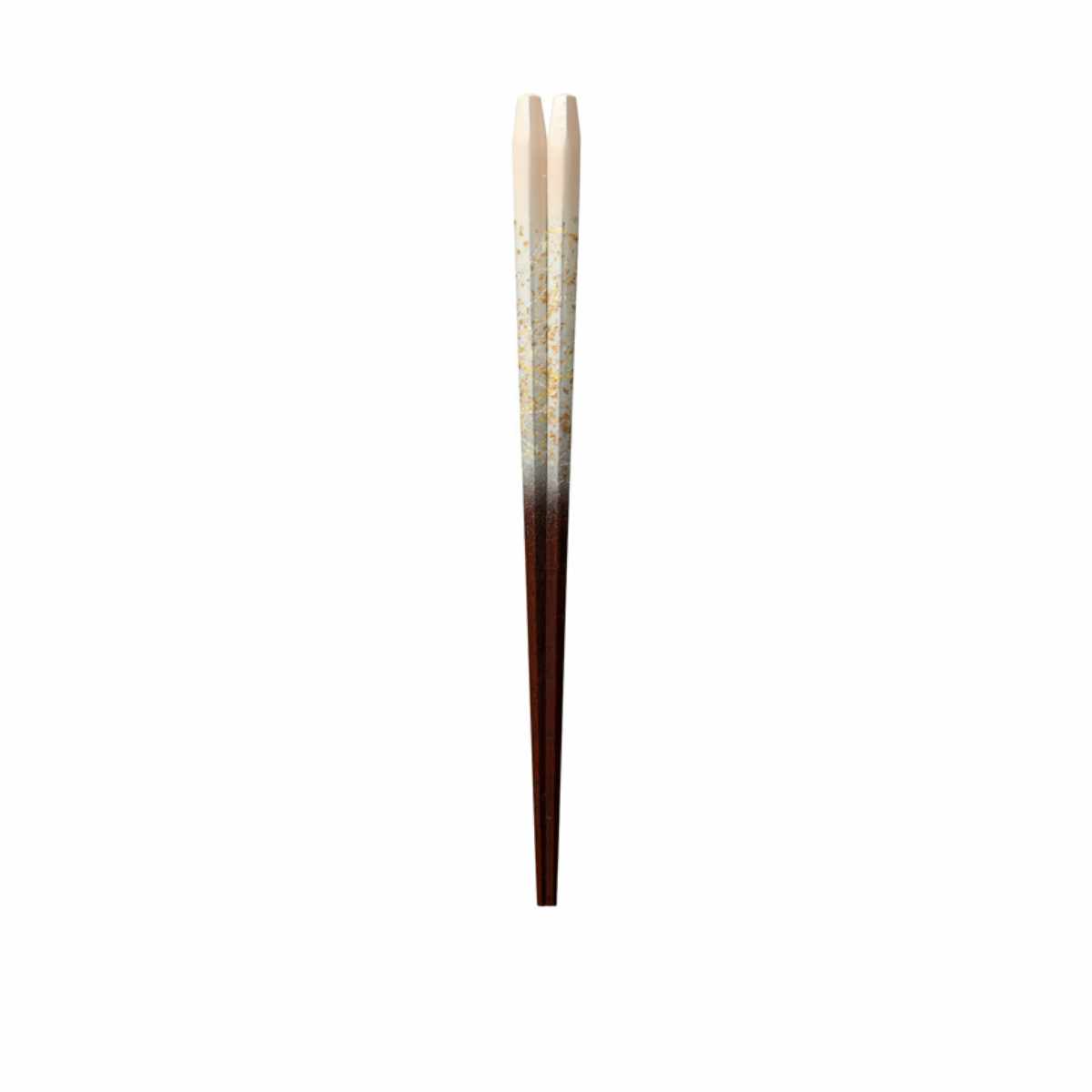 京都の屏風屋の職人がこだわった金彩で彩られた艶やかなデザインのお箸です。何層にも漆を重ねる若狭塗のお箸は使うほどに手になじみ、愛着がわいてくる上質な質感です。同シリーズ揃えて夫婦箸としてもお使いいただけます。