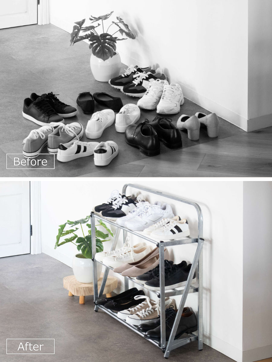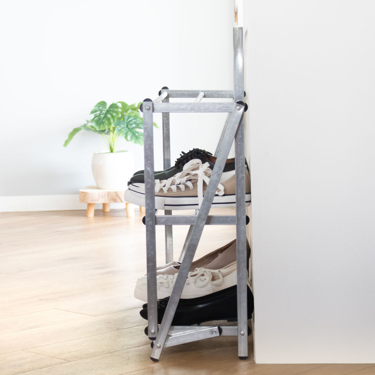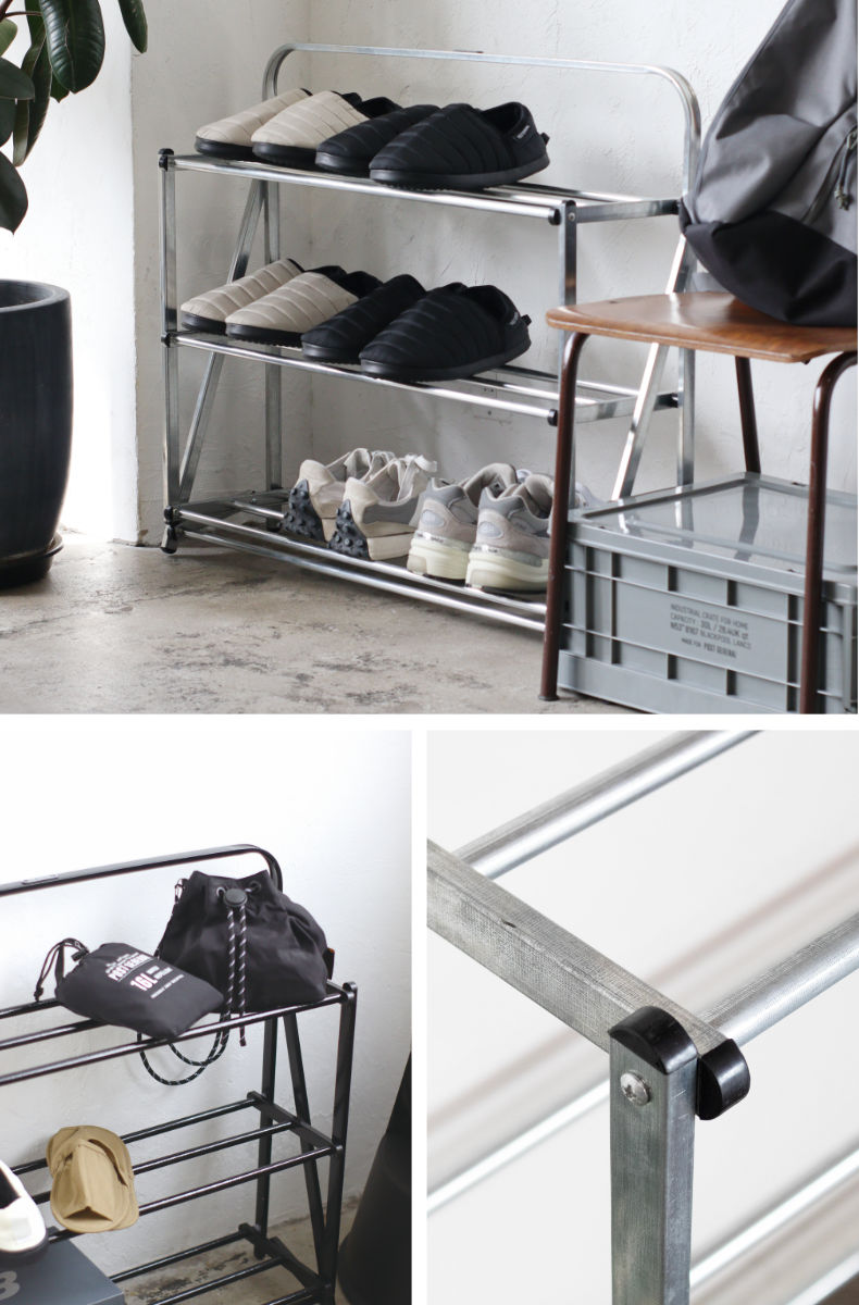 無駄のないシャープな印象が魅力のシューズラックです。スチールならではの耐久性と安定感を兼ね備え、日常使いに最適。玄関やクローゼットを、よりスマートに、より美しく整えてくれます。