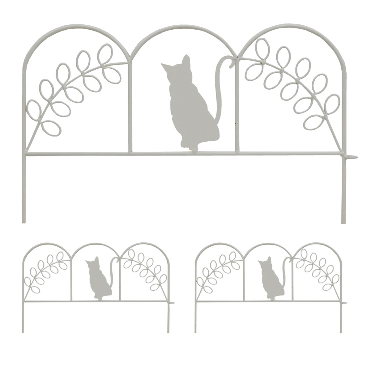 アイアンフェンス ミニ 猫 3枚組 ( ガーデンフェンス アイアン 柵 園芸 エクステリア 雑貨 ねこ ネコ 花壇 庭 ベランダ バルコニー ガーデニング アイアンガーデンフェンス トレリス ) 【ブラック】