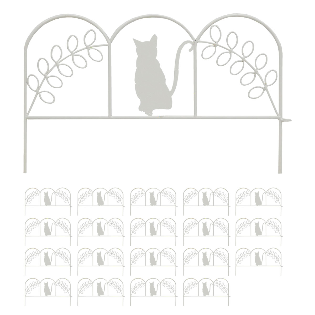 アイアンフェンス ミニ 猫 20枚組 ( ガーデンフェンス アイアン 柵 園芸 エクステリア 雑貨 ねこ ネコ 花壇 庭 ベランダ バルコニー ガーデニング アイアンガーデンフェンス トレリス ) 【ホワイト】