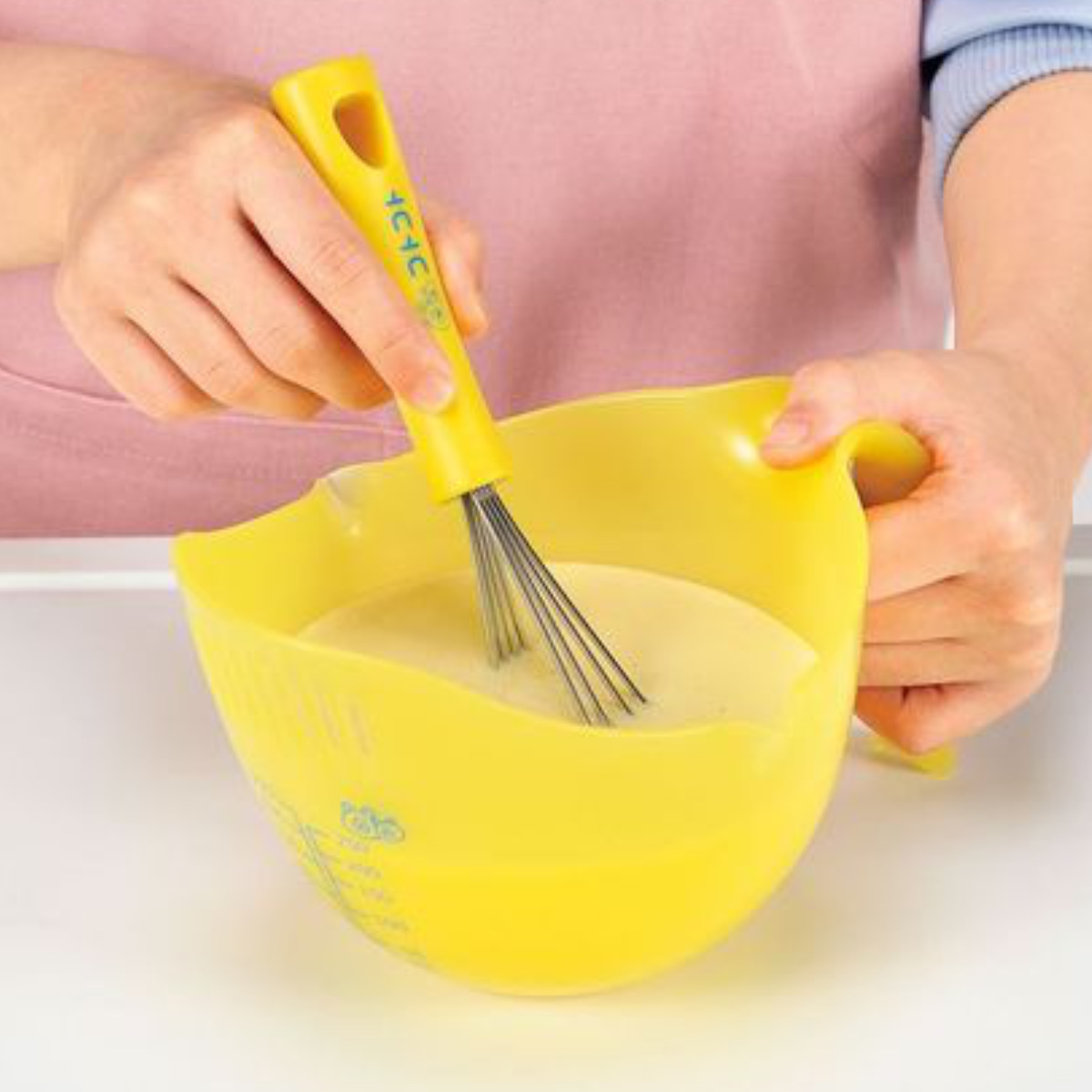 お子様でもしっかり握れて混ぜられるボウル