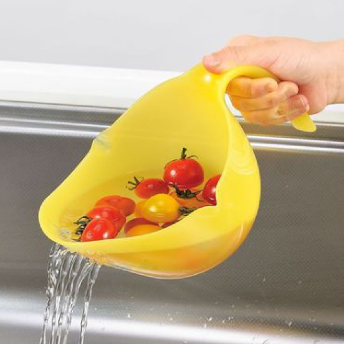 側面には水切り穴があるので、傾けるだけで水切りができます。また、左右に注ぎ口があるので、液だれしにくく、利き手を選ばず液体を注ぐことができます。