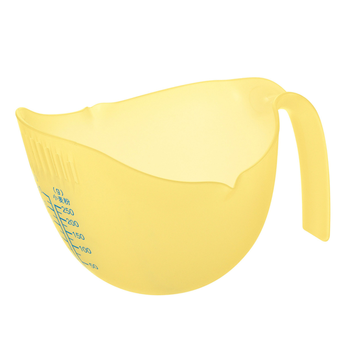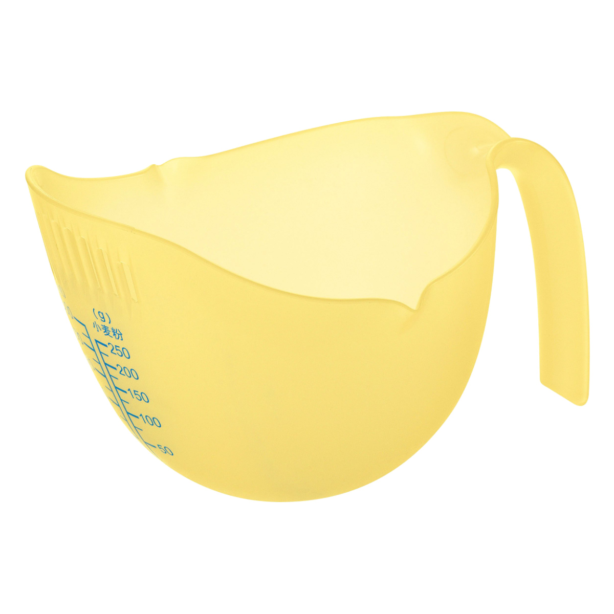 液体と小麦粉が量れるメモリがそれぞれ付いています。