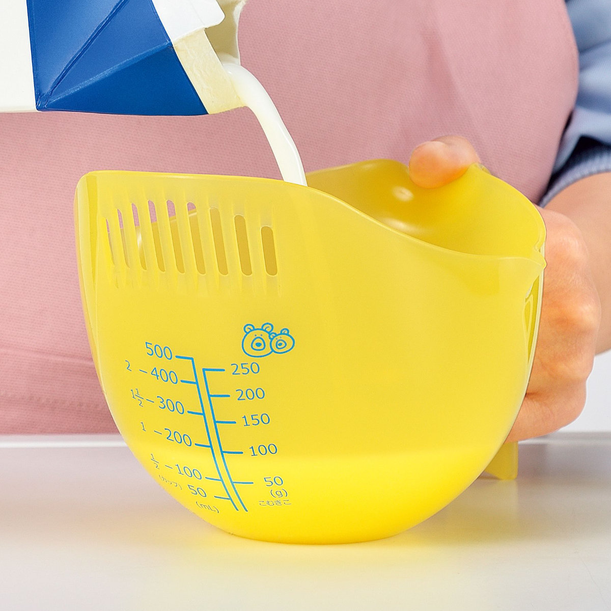 手付きボウル コトコト 食洗機対応 耐熱 計量 水切りできるボウル 日本製 ( 調理用ボウル ボール 電子レンジ対応 取っ手付き 目盛り付き 湯切り 水切り 下ごしらえ 可愛い 子供用 キッズ キッチン小物 キッチンツール お菓子作り )