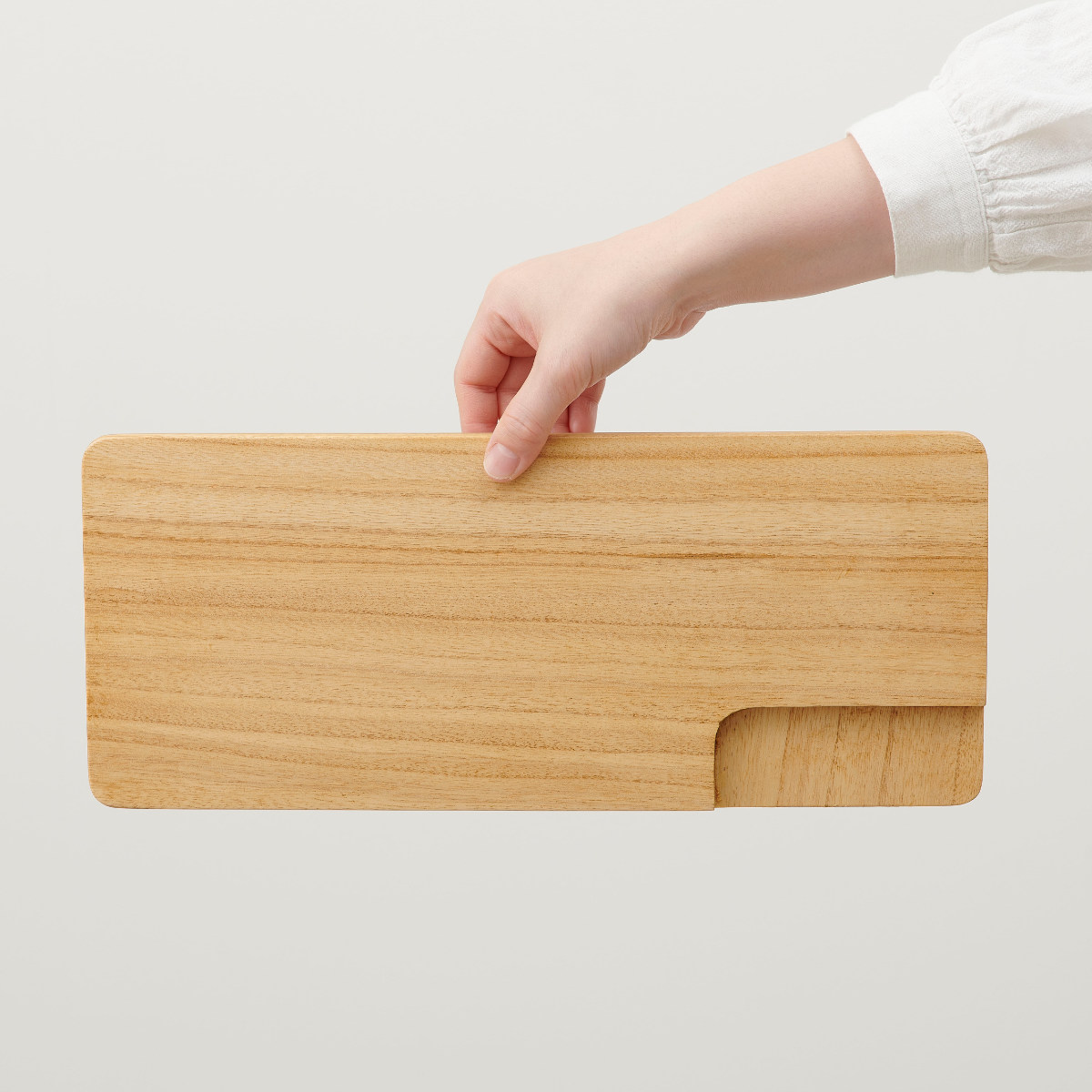 一般的な木製まな板に比べて圧倒的に軽く、片手でもラクに扱える軽量設計です。持ちやすいシンプルなデザインなので、忙しい朝でもサッと取り出してすぐに使えます。