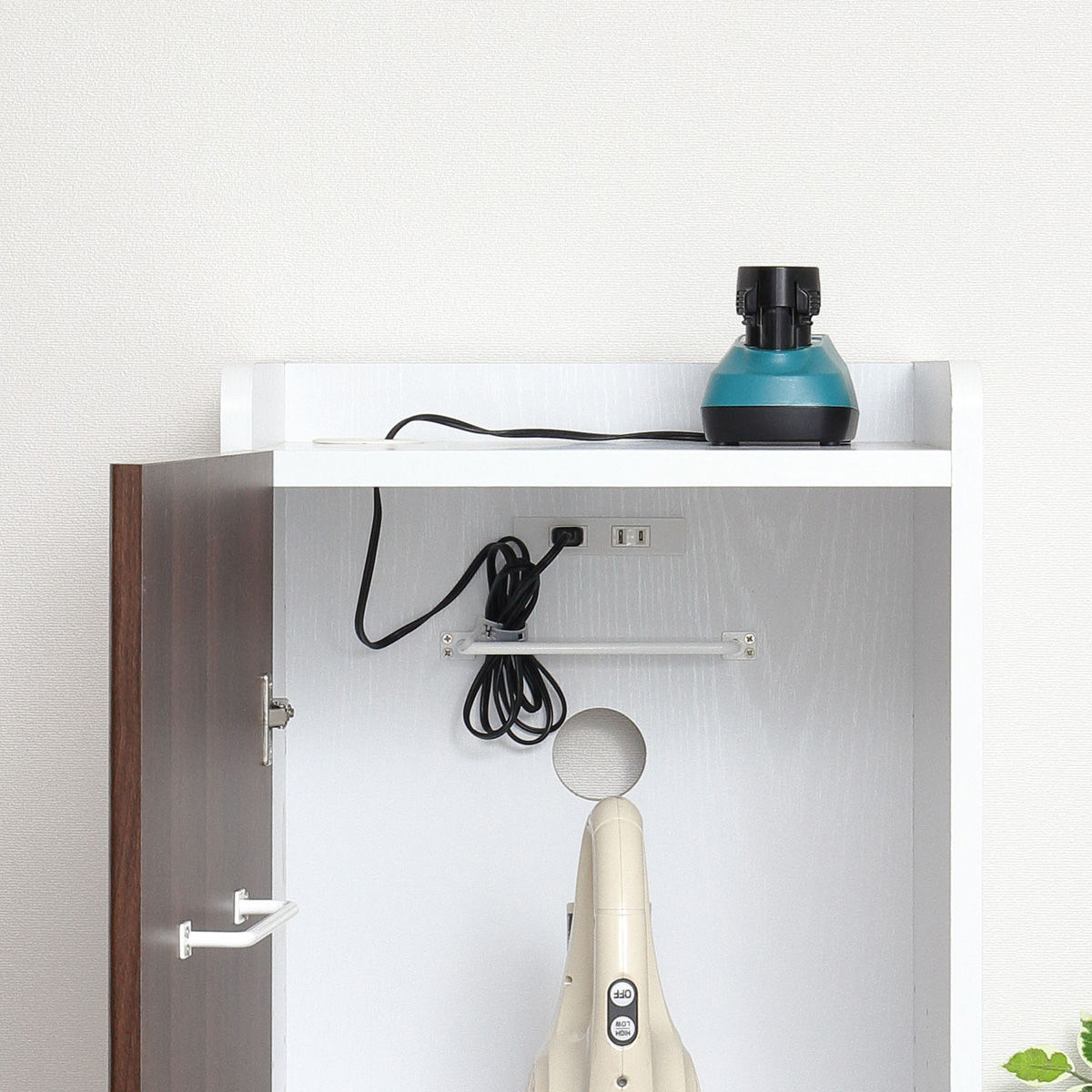 掃除機収納 ラック 幅43.5cm 2口コンセント付 ( 掃除機収納庫 クリーナー 収納 棚 玄関収納 掃除機 掃除機スタンド 片付け 物置 整理 省スペース ブラウン ホワイト コンセント付 ) 【ブラウン】