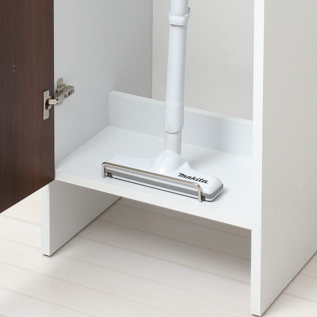 内側の下部には、ストッパーが付いています。掃除機が倒れにくく安心してお使いいただけます。