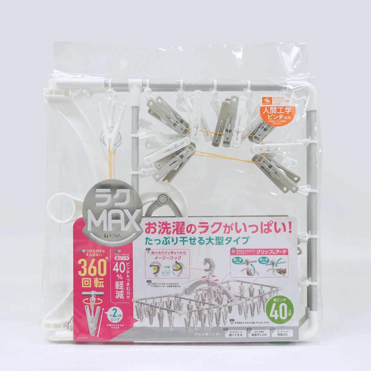お洗濯の「ラク」な機能が満載で全ての方に使いやすい「ラクMAX」シリーズの角ハンガーです。小物のまとめ干しに便利です。洗濯物がたっぷり干せるピンチ40個付き大型タイプです。