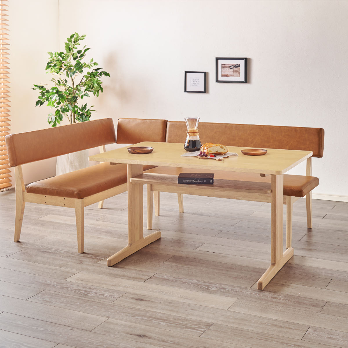 ダイニングテーブル 3点セット ロータイプ 2人掛けソファ×1 コーナーソファ×1 ( ダイニングセット ダイニング オーク 木製 天然木 食卓 セット 天板下 収納棚 レザー調 4人掛け )