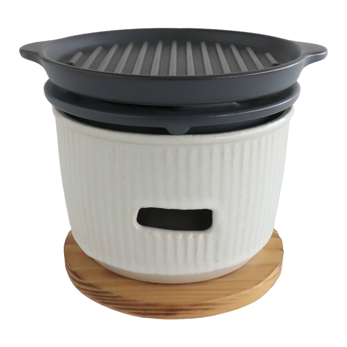 | 材質 | 本体:陶器 インナー・グリルプレート:耐熱陶器 鍋敷き:天然木(焼スギ) |