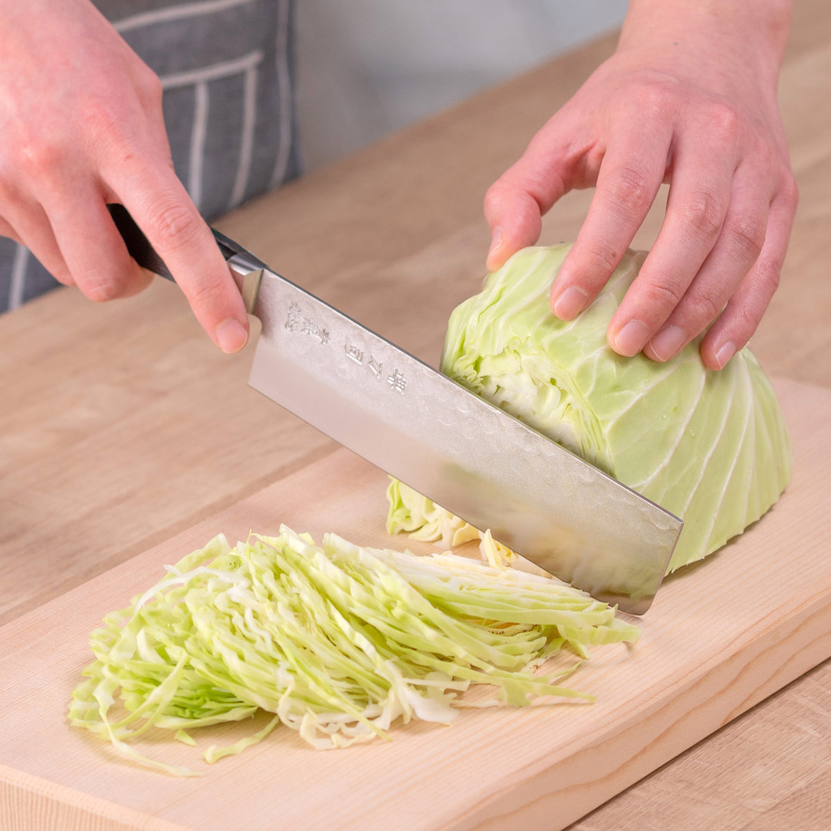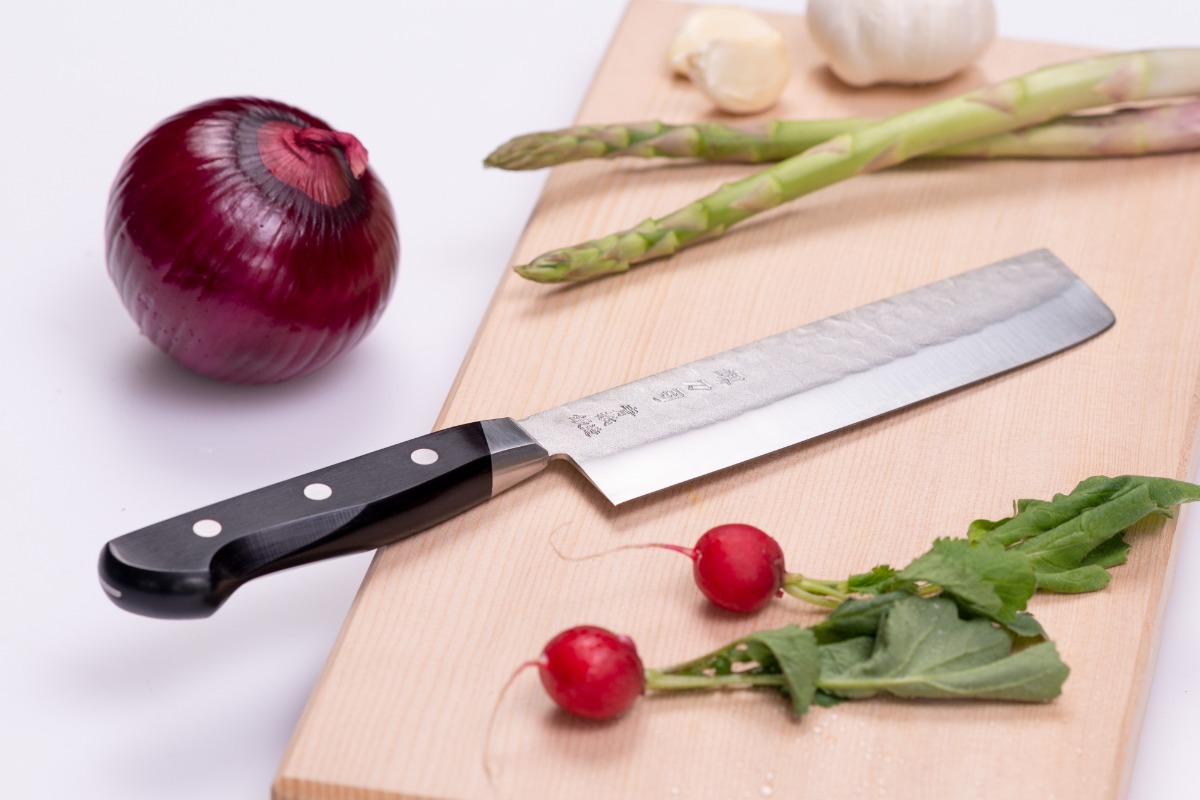 野菜を切ることに特化した包丁で、幅が広く刃がまっすぐな形状が特徴です。キャベツの千切り、大根のカツラ剥き、白菜のそぎ切りなどに適しています。