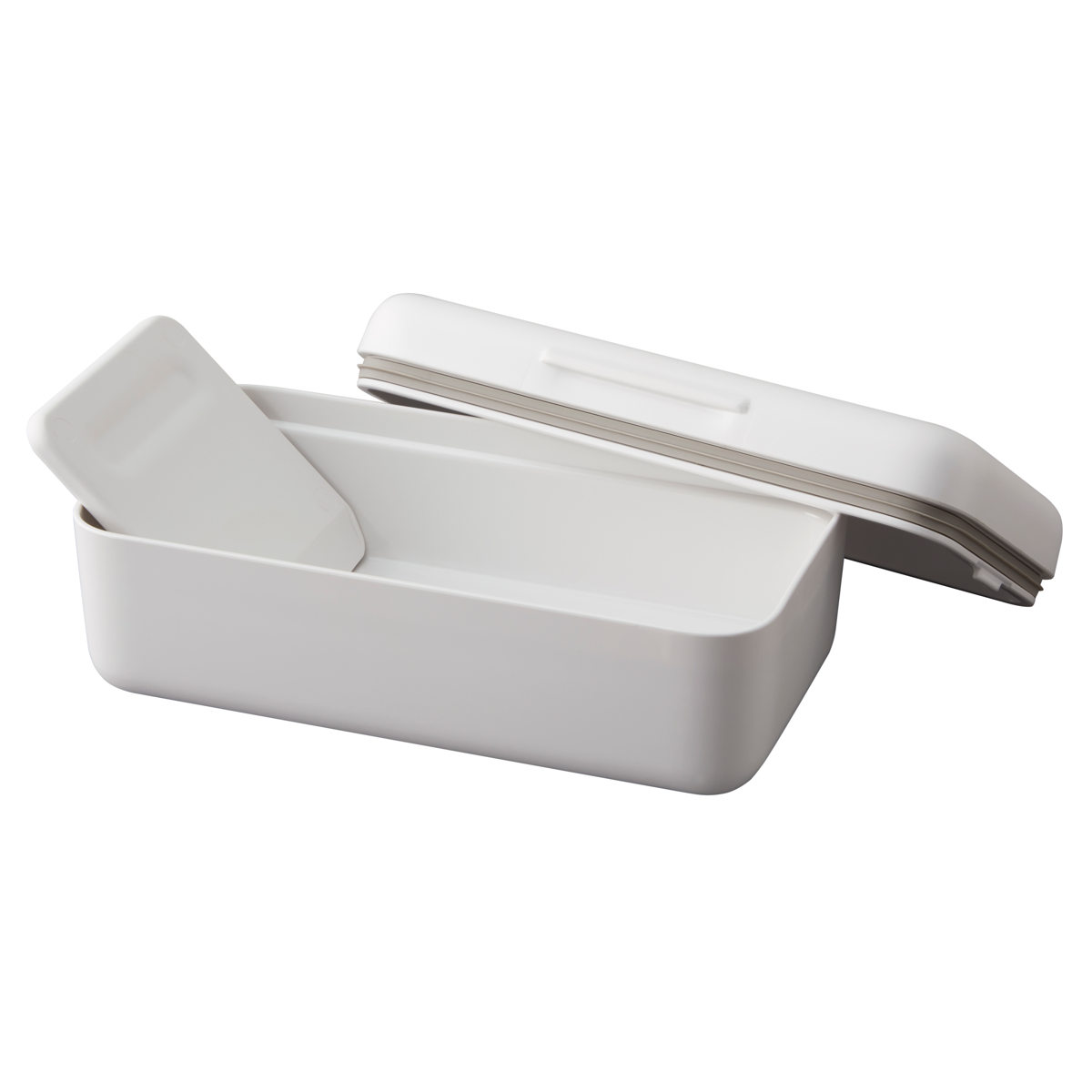 カッターは、ケースのフタ裏に一緒に収納できます。ケースに入れたバターに触れずに保存できます。