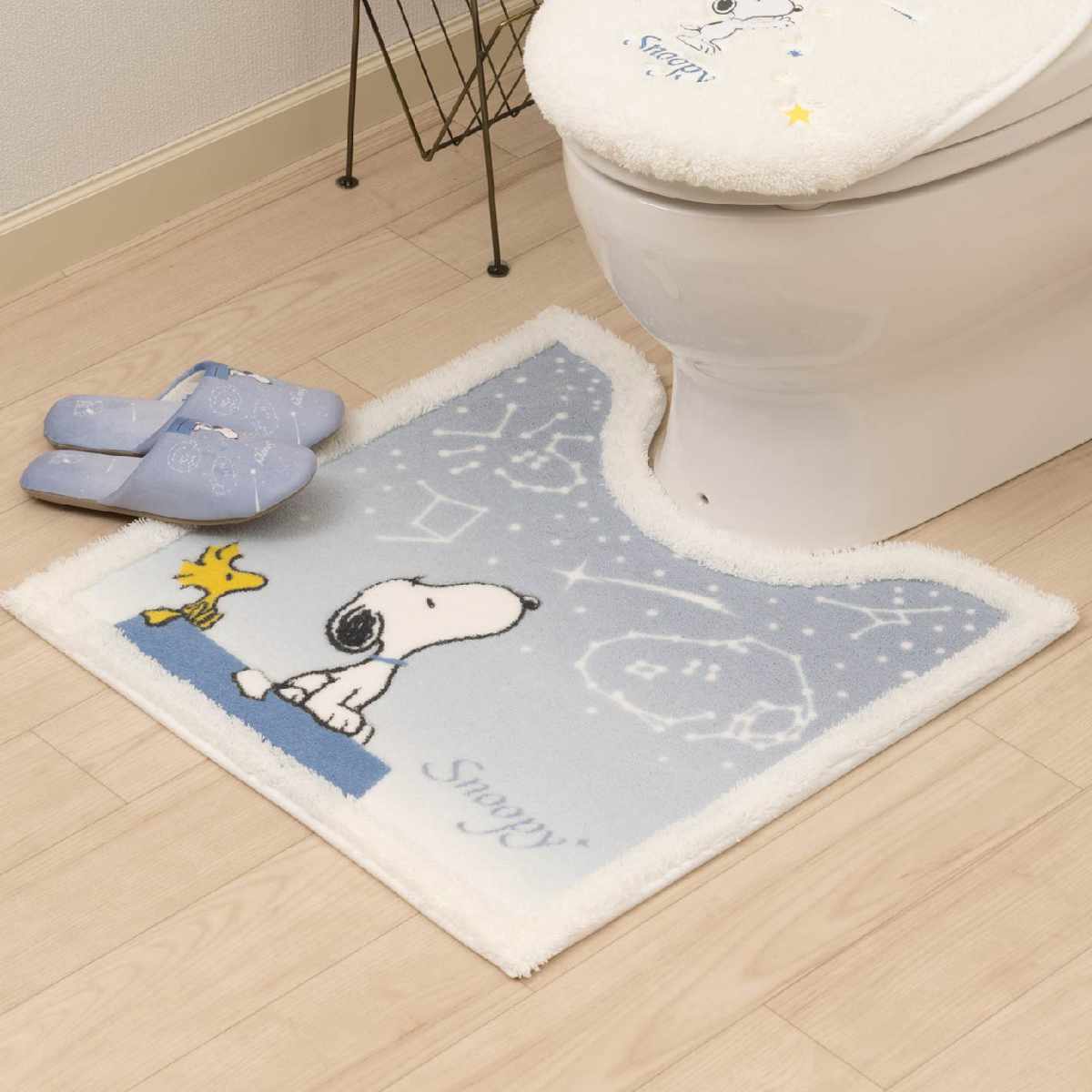 トイレマット スヌーピー 星空スヌーピー 約60×60cm ( トイレ マット 足元マット すべり止め 抗菌 防臭 SNOOPY 洗濯可 日本製 トイレタリー 滑り止め 洗える 60×60 キャラクター 星空 ブルーグレー ブルー ) 【ブルーグレー】