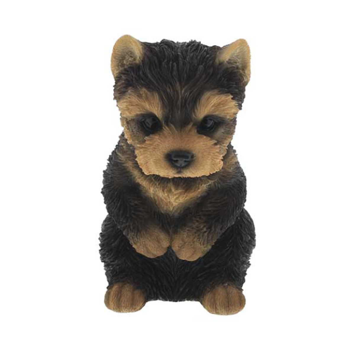 ペットとしても人気なヨークシャーテリアのガーデンオーナメントです。細部までこだわったきれいな仕上げで、まるで生きているかのようなリアルな表情が特徴です。お庭やお部屋に飾れば、ペットのいるような暮らしを楽しめます。