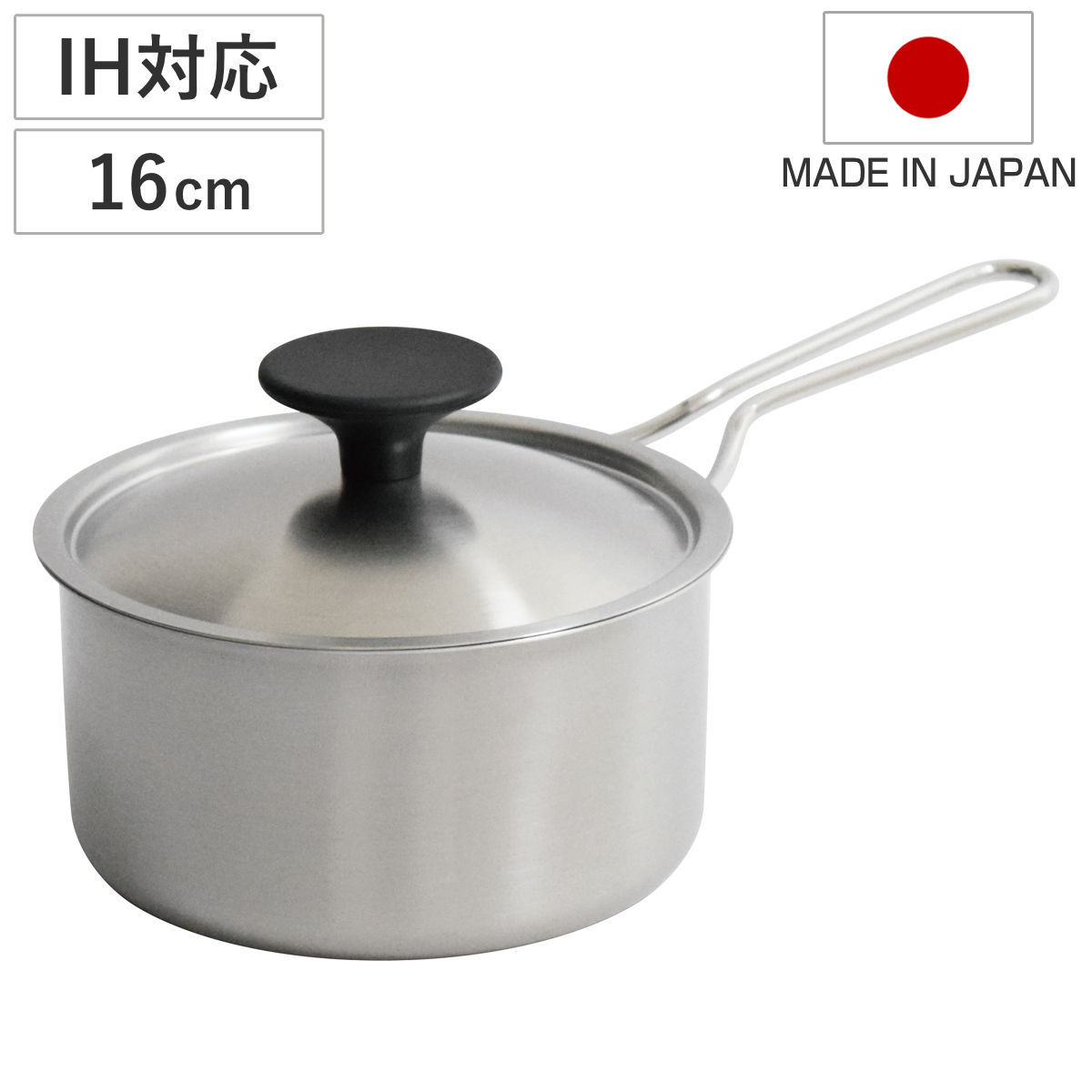 片手鍋 16cm IH対応 ステンレス製 内面セラミック加工 ソースパン 日本製 UMIC ( ガス火対応 オール熱源対応 片手なべ 鍋 軽い なべ 16センチ ステンレス鍋 つや消し 3層構造 軽量 蓋付き )