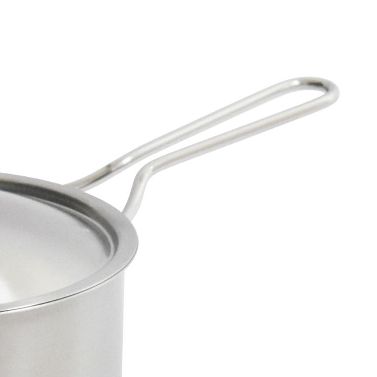 鍋本体の上部に広がりを持たせたフリンジ加工が施されています。ストレート形状に比べて水切れが格段に良く、お皿などに注ぐ際に注ぎやすいです。