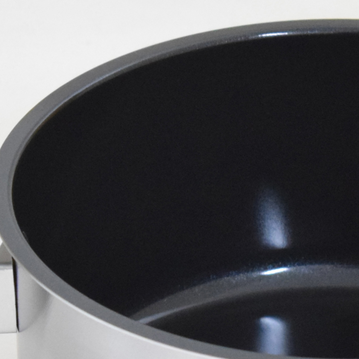 | 材質 | 【鍋】 本体:複合材(ステンレス鋼(クロム18%、ニッケル8%)、アルミニウム合金、ステンレス鋼(クロム18%)) 取っ手:ステンレス鋼 表面加工:内面/セラミック塗膜加工、外面/サテン仕上げ 【蓋】 本体:ステンレス鋼 ツマミ:フェノール樹脂 表面加工:サテン仕上げ |
