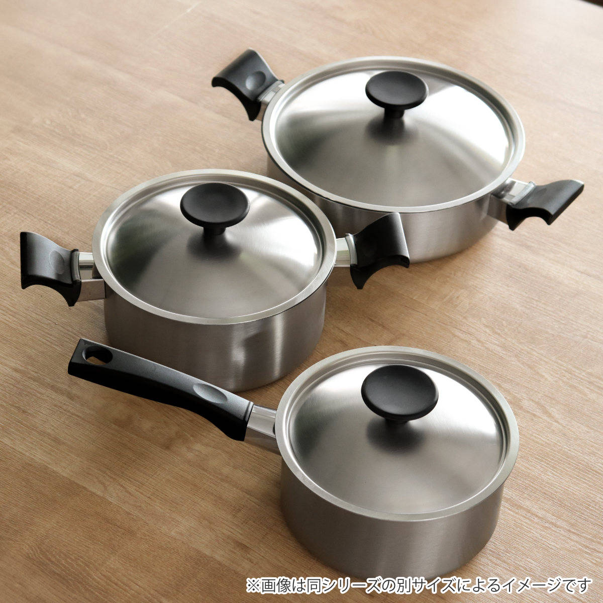 味噌汁やスープ作りに便利な片手鍋18cm、カレーやシチューなど煮込み料理に使いやすい両手鍋20cm、おでんなど鍋物に最適な両手鍋24cmも取り揃えております。単身でも家族でも使いやすいサイズ展開で、用途によってお選びいただけます。