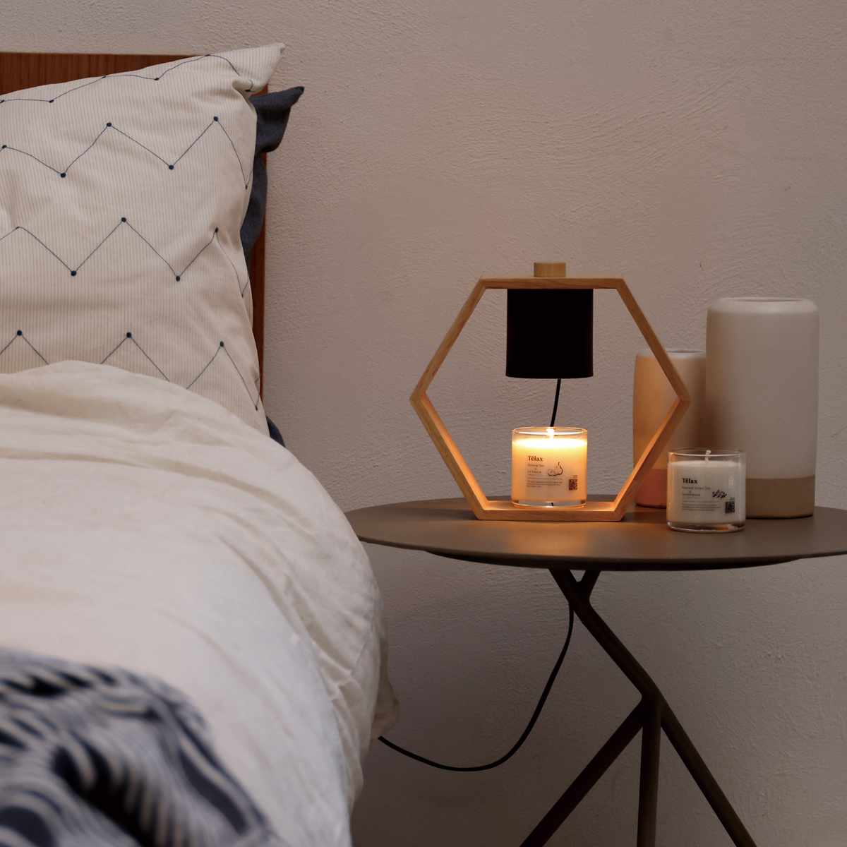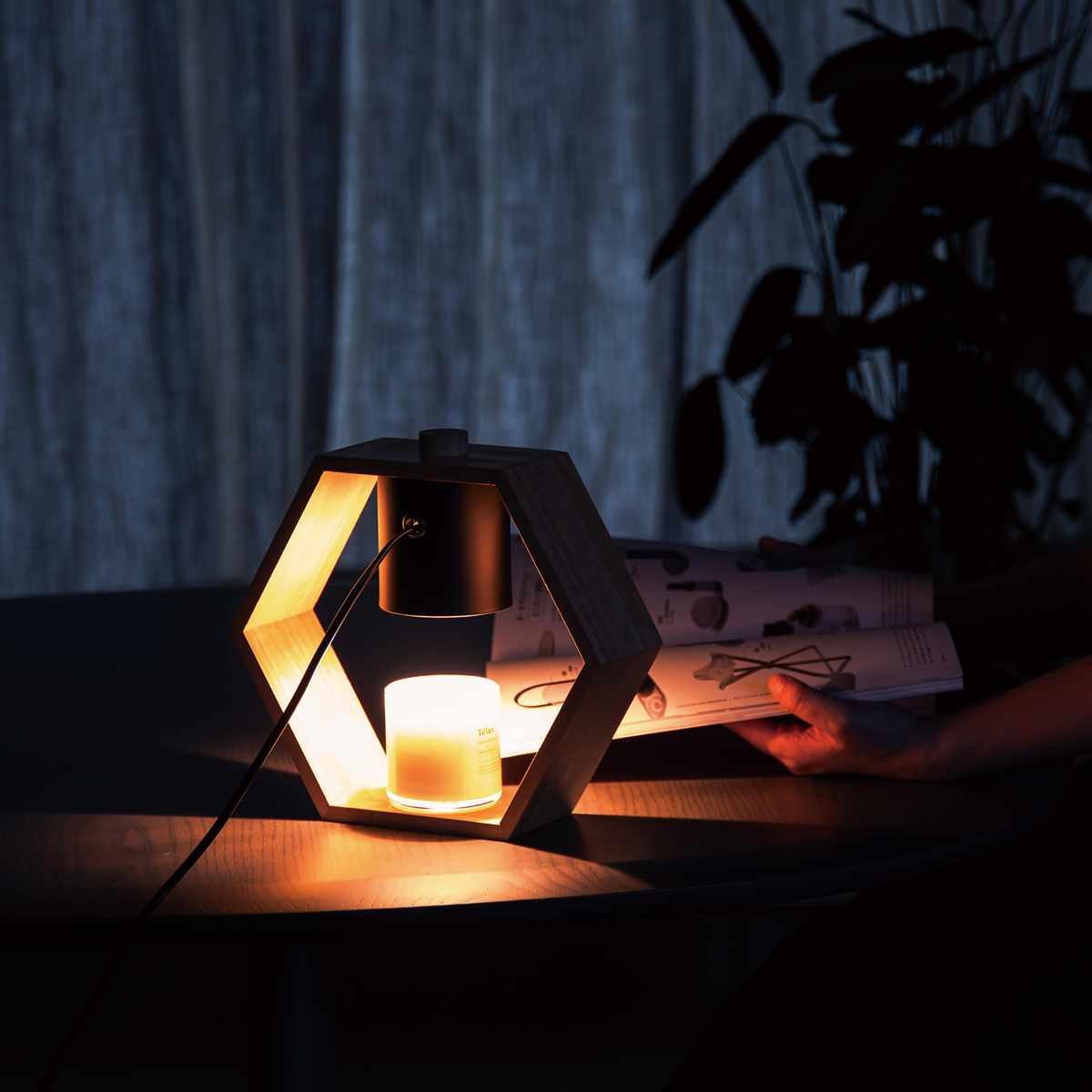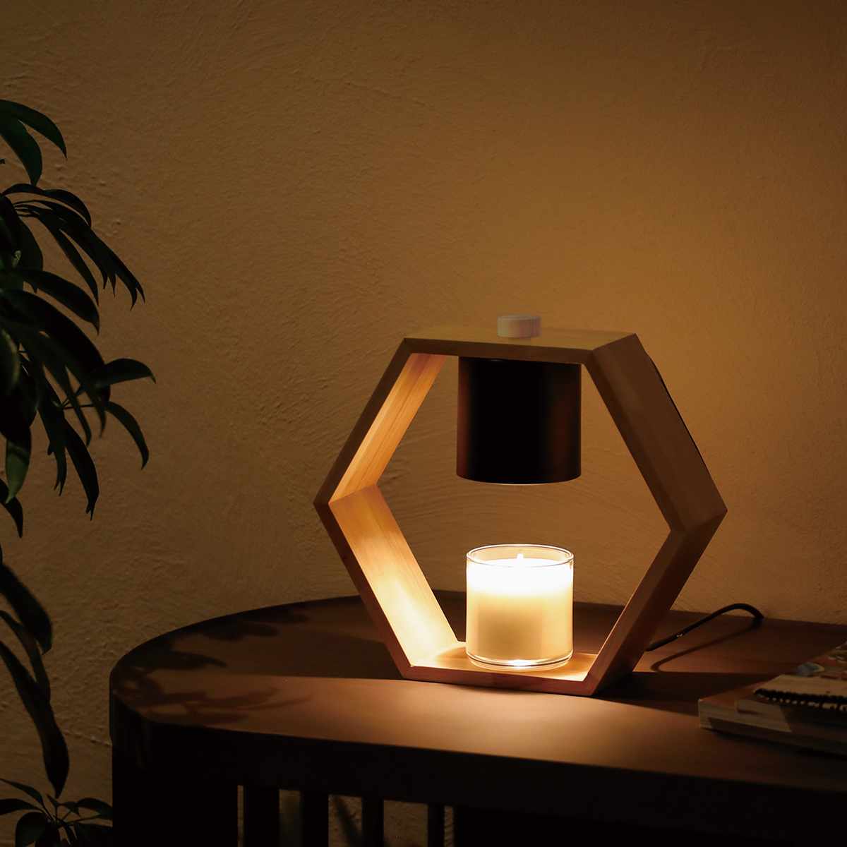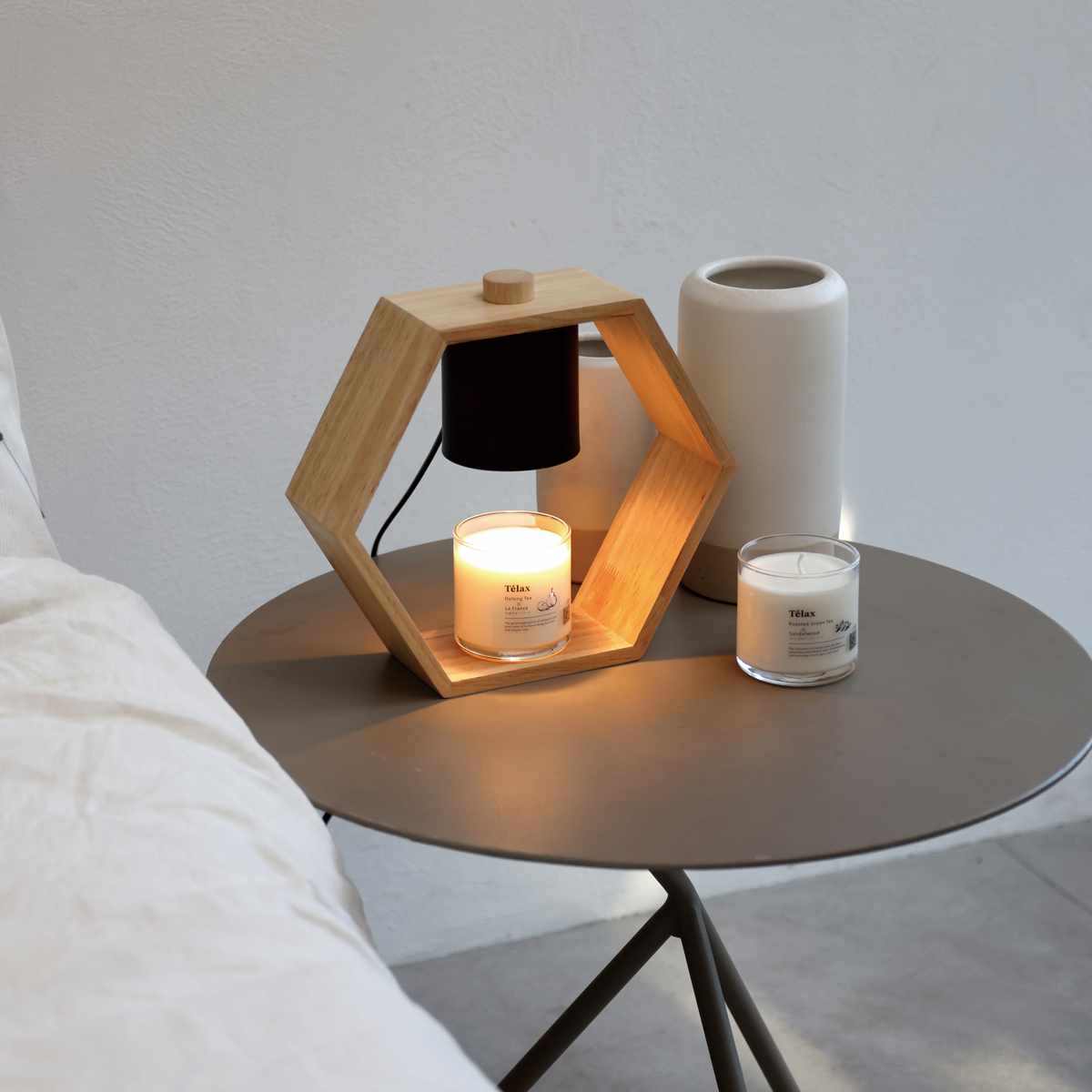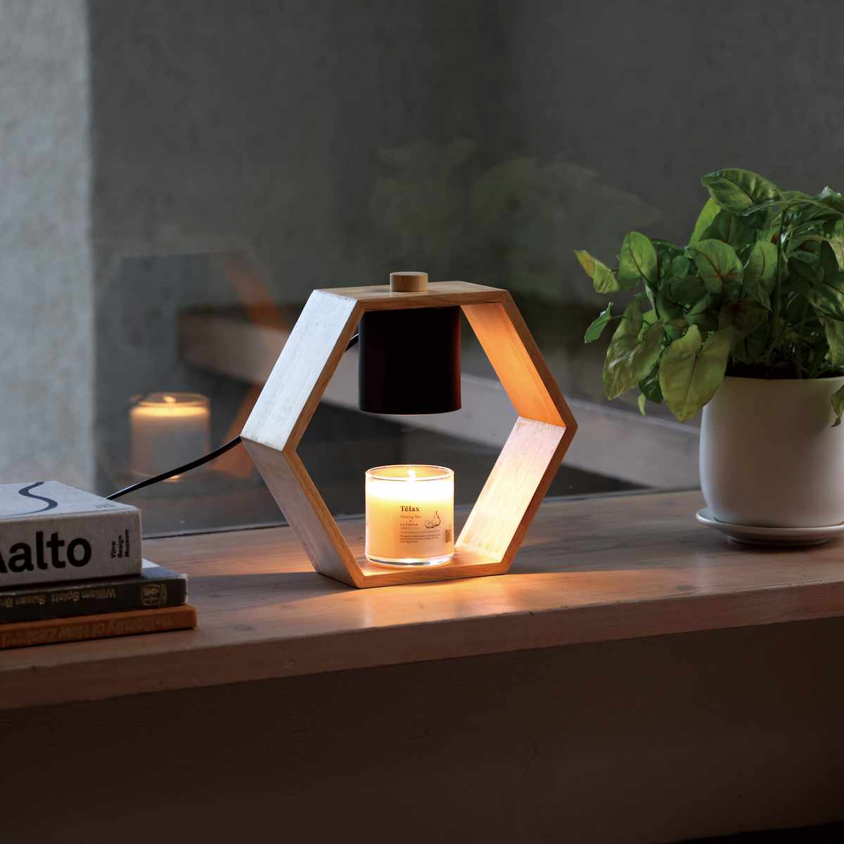 Telax キャンドルウォーマーランプ 天然木 ( キャンドルウォーマー おしゃれ 照明 ランプ アロマ ライト タイマー付き 木製 六角形 アロマグッズ 調光 フロアライト キャンドル 寝室 間接照明 インテリア 香り ハロゲン電球 )