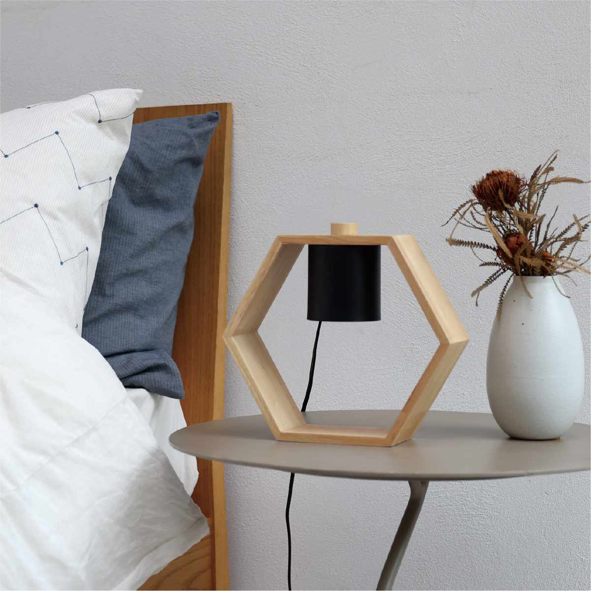 天然木の六角形のフォルムは、和室にも洋室にもマッチします。
