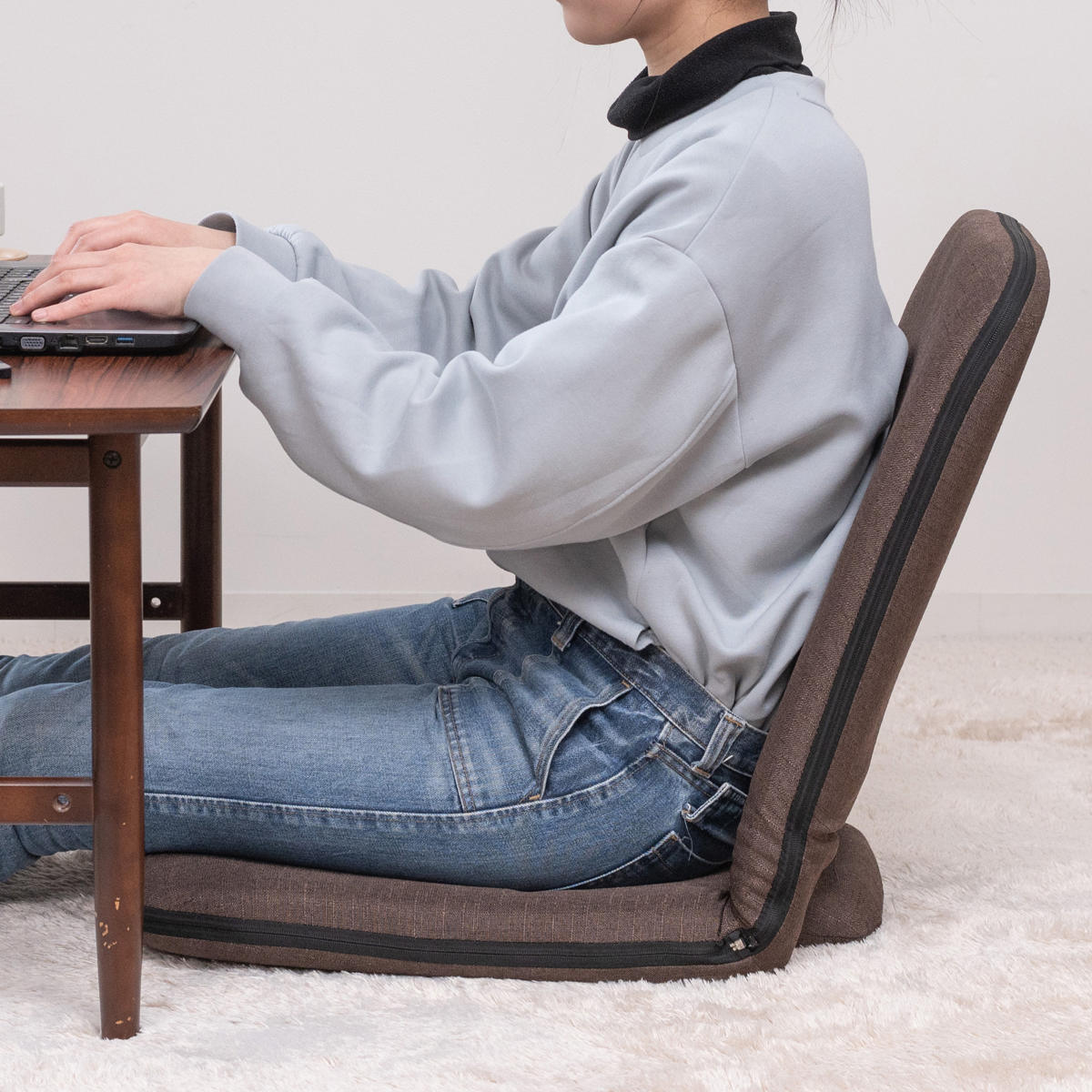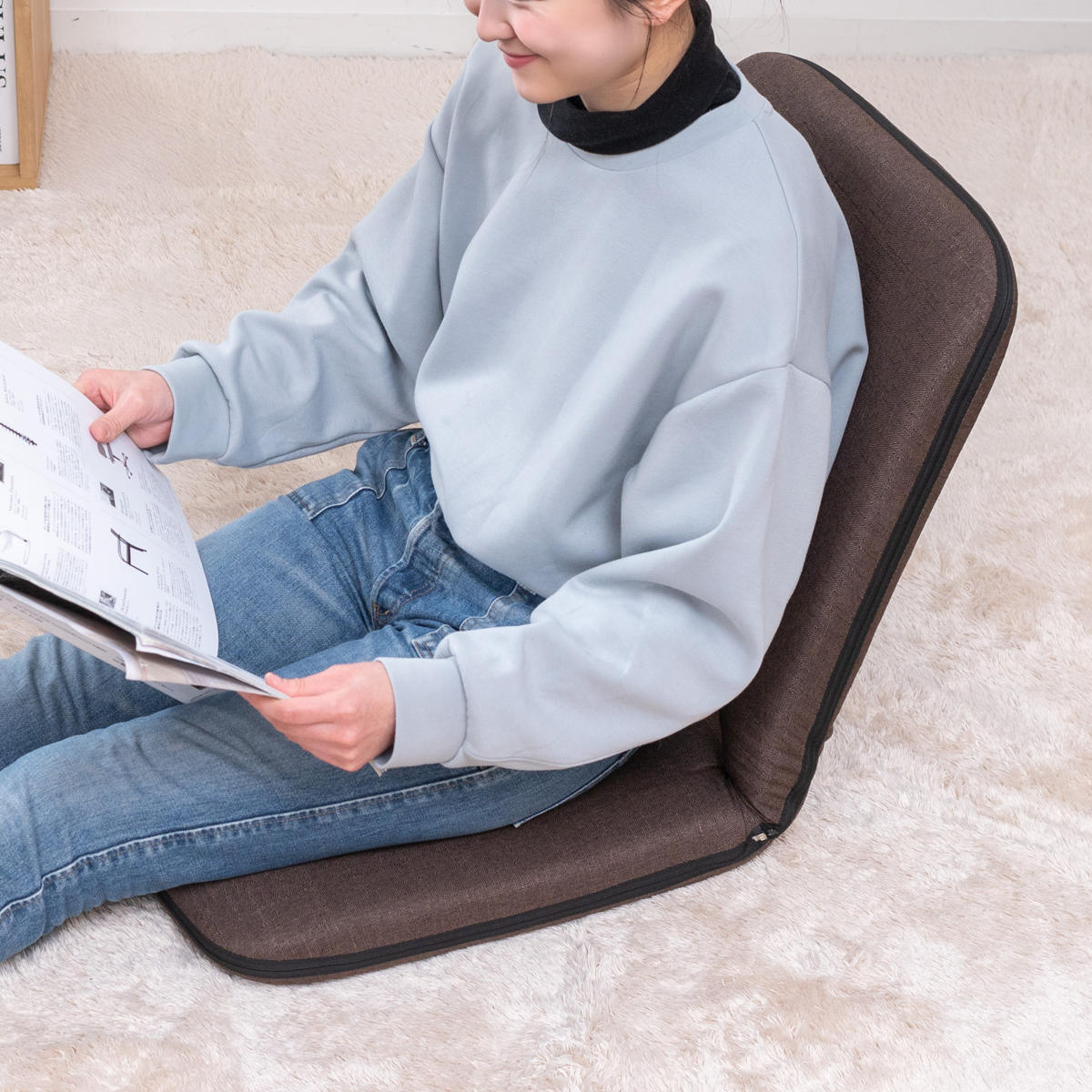 座椅子 1人掛け 幅41cm コンパクト リクライニング シオン2 ( 座いす 座イス チェア フロアチェア ファブリック スリム 収納 無地 シンプル 取っ手付き 持ち運び 軽量 軽い ) 【ブラウン】
