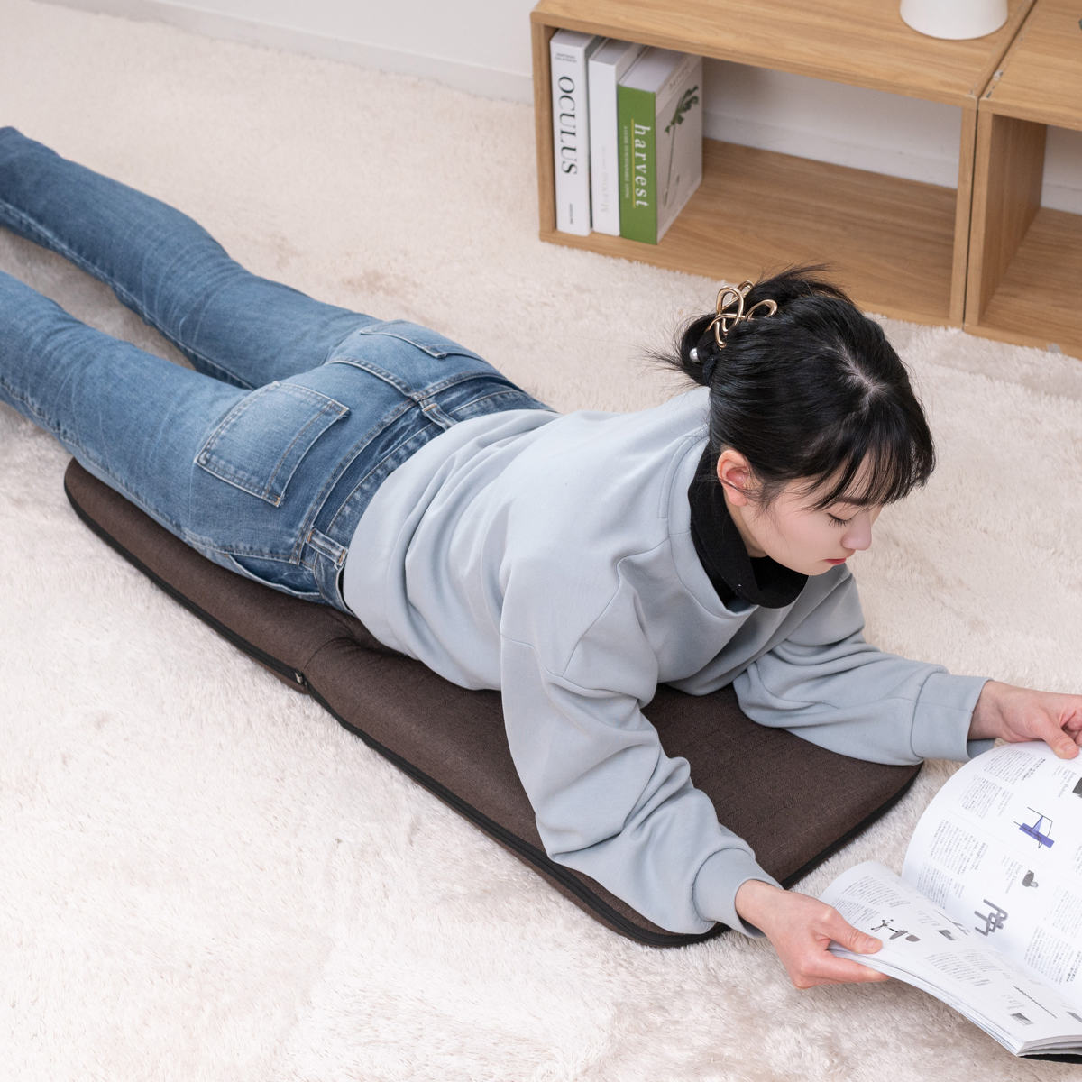 座面の厚さは約7cmで底つき感がなく、季節を問わず快適に使えるポリエステル生地を使用しています。