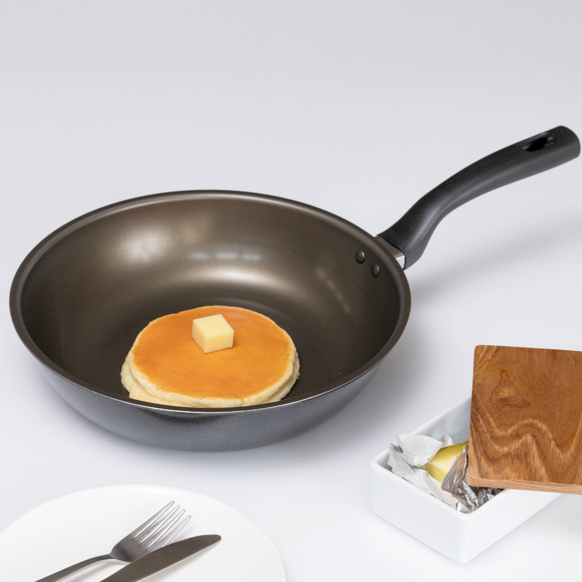 「するんっ」と汚れが落ちやすい「WellFlon スピンコーティング」が施されたフライパンです。こびりつきにくさ、お手入れ時の汚れの落ちやすさ、ぜひ一度使って体験してください。