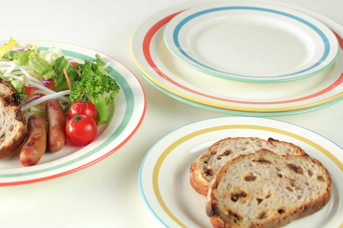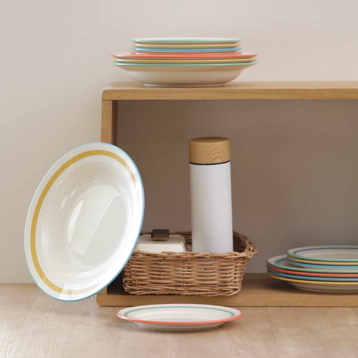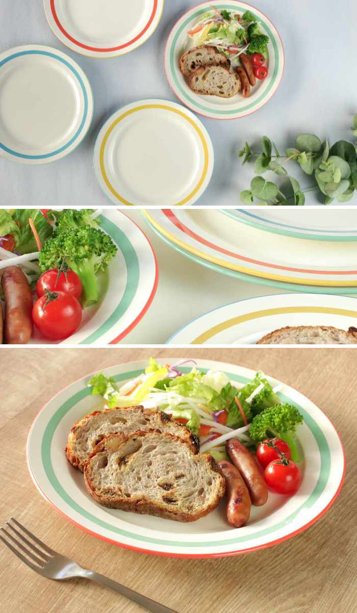 まるで喫茶店のような、レトロなデザイン「Linea(リネア)」シリーズ。色とりどりのラインが食卓をパっと華やかにしてくれます。