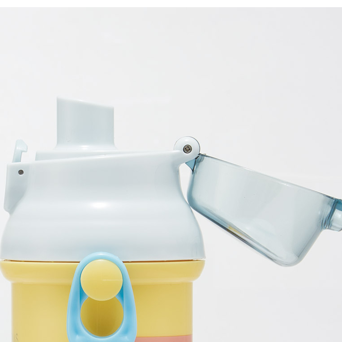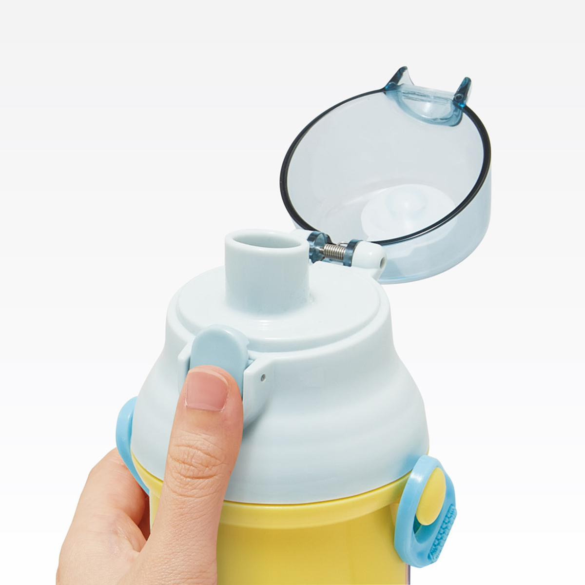 水筒の蓋はボタンを押すだけで開けることができるワンタッチ式です。飲み終わったら蓋をカチッと閉めるだけなので、小さなお子様でも簡単に開閉できます。