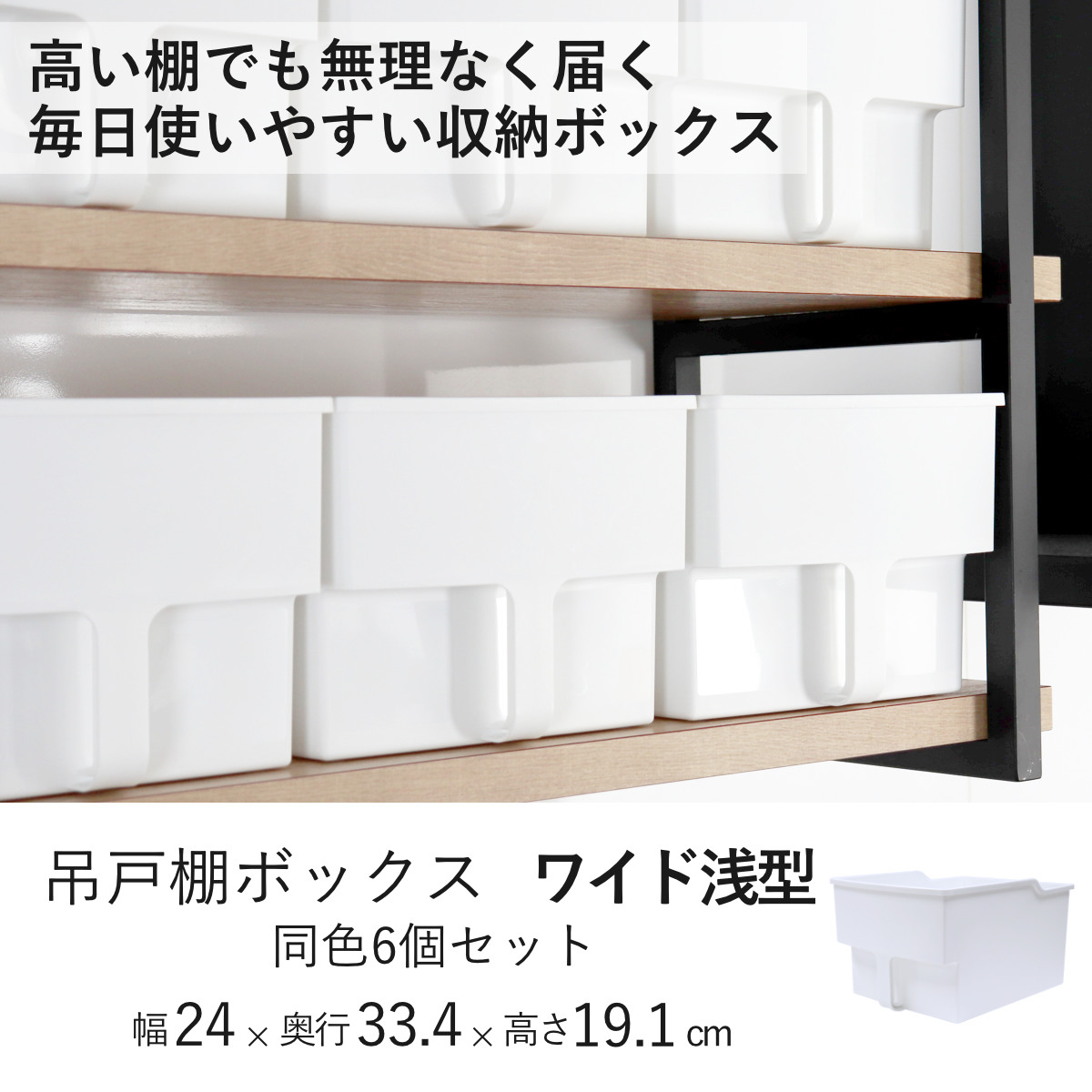 キッチン収納ケース 吊り戸棚ボックス ワイド 浅型 幅24cm 6個セット ( キッチンストッカー 取っ手付き 吊戸棚 ケース 吊戸棚ボックス 吊り戸棚ストッカー 吊戸棚収納 戸棚収納 収納BOX 吊り戸棚 キッチン 収納 整理ケース )
