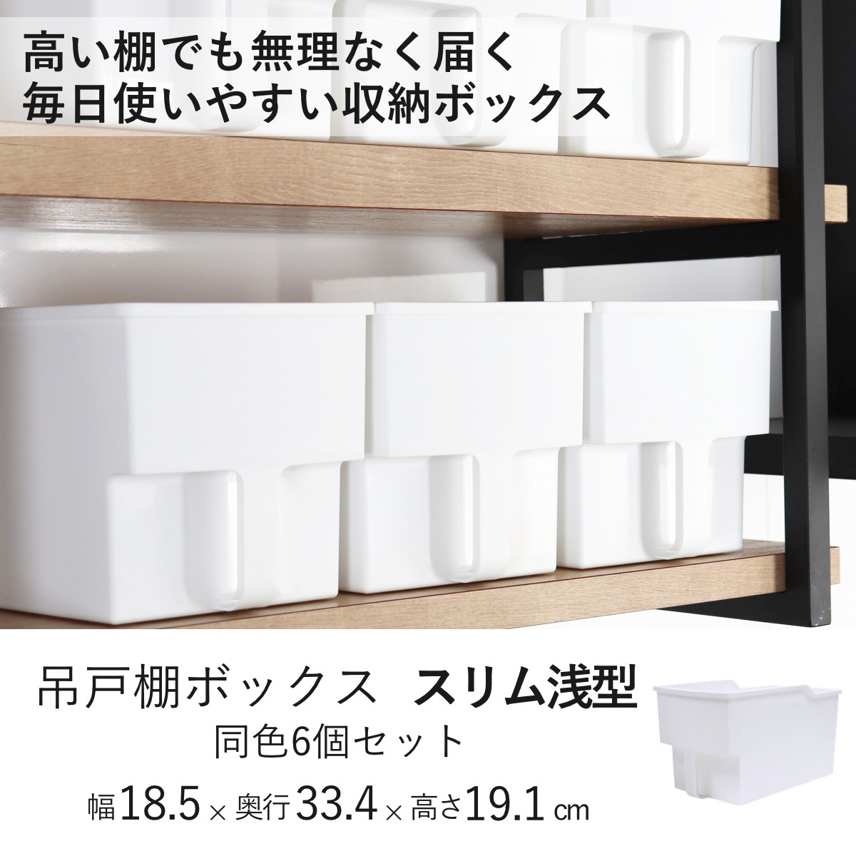 キッチン収納ケース 吊り戸棚ボックス スリム 浅型 幅18.5cm 6個セット ( キッチンストッカー 取っ手付き 吊戸棚 ケース 吊戸棚ボックス 吊り戸棚ストッカー 吊戸棚収納 戸棚収納 収納BOX 吊り戸棚 キッチン 収納 整理ケース )