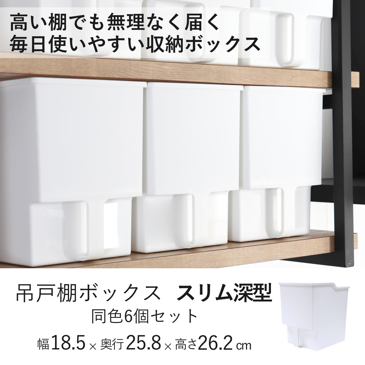 キッチン収納ケース 吊り戸棚ボックス スリム 深型 幅18.5cm 6個セット ( キッチンストッカー 取っ手付き 吊戸棚 ケース 吊戸棚ボックス 吊り戸棚ストッカー 吊戸棚収納 戸棚収納 収納BOX 吊り戸棚 キッチン 収納 整理ケース )