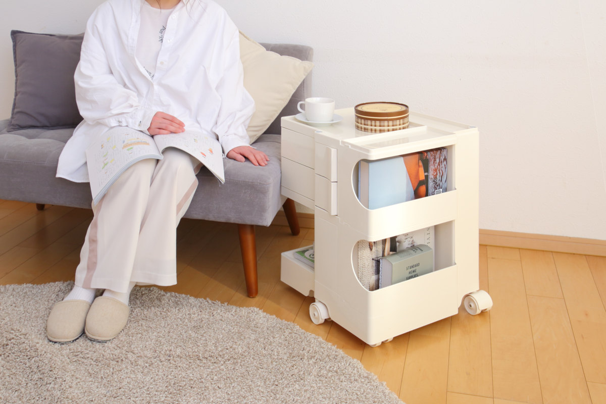 デスクワゴンの他、サイドテーブルやドレッサー、赤ちゃんのお世話用品をまとめておくワゴンとしてもお使いいただけます。収納スペースが豊富なので、家中のいろいろな場所での整理整頓にぴったりです。