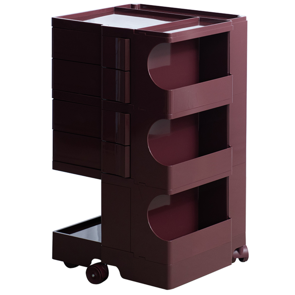 マルチワゴン 幅43cm Pluna(プルーナ)ハイタイプ 四面収納 完成品 ( ワゴン キャスター付 収納 棚 ラック トレー 4段トレー ミニワゴン トロリー サイドワゴン 四段 ボビーワゴン リプロダクト ) 【ワイン】