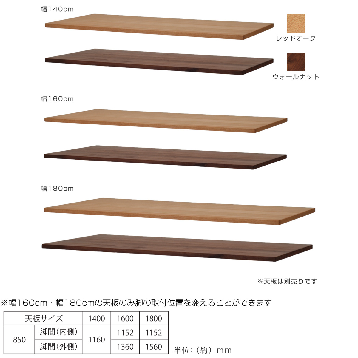 天板は(別売り)3サイズ、2色からお選びいただけます。お部屋に合わせてお選びください。