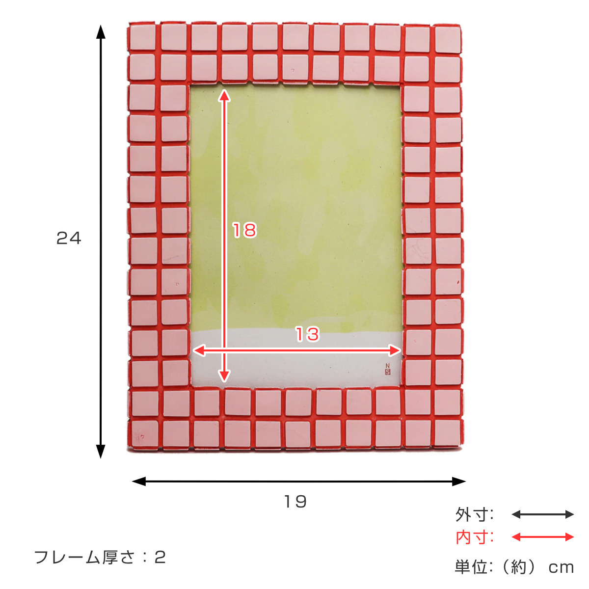 | サイズ | 約 横19×縦24(cm) 内寸:約 横13×縦18(cm) フレーム厚さ:約 2cm 対応フォトサイズ:2L判 |