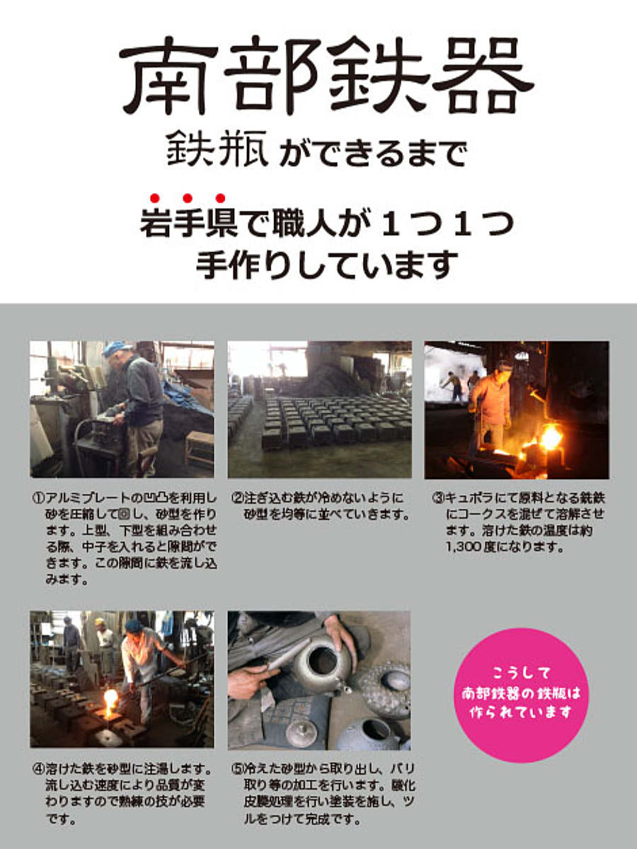 伝統受け継がれる岩手県で熟練の職人により、1つ1つ手作りで製造されています。