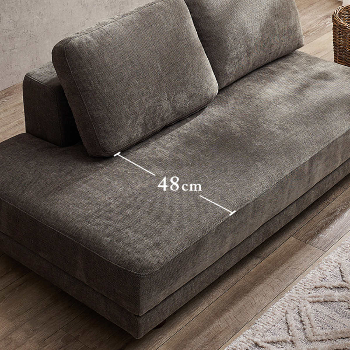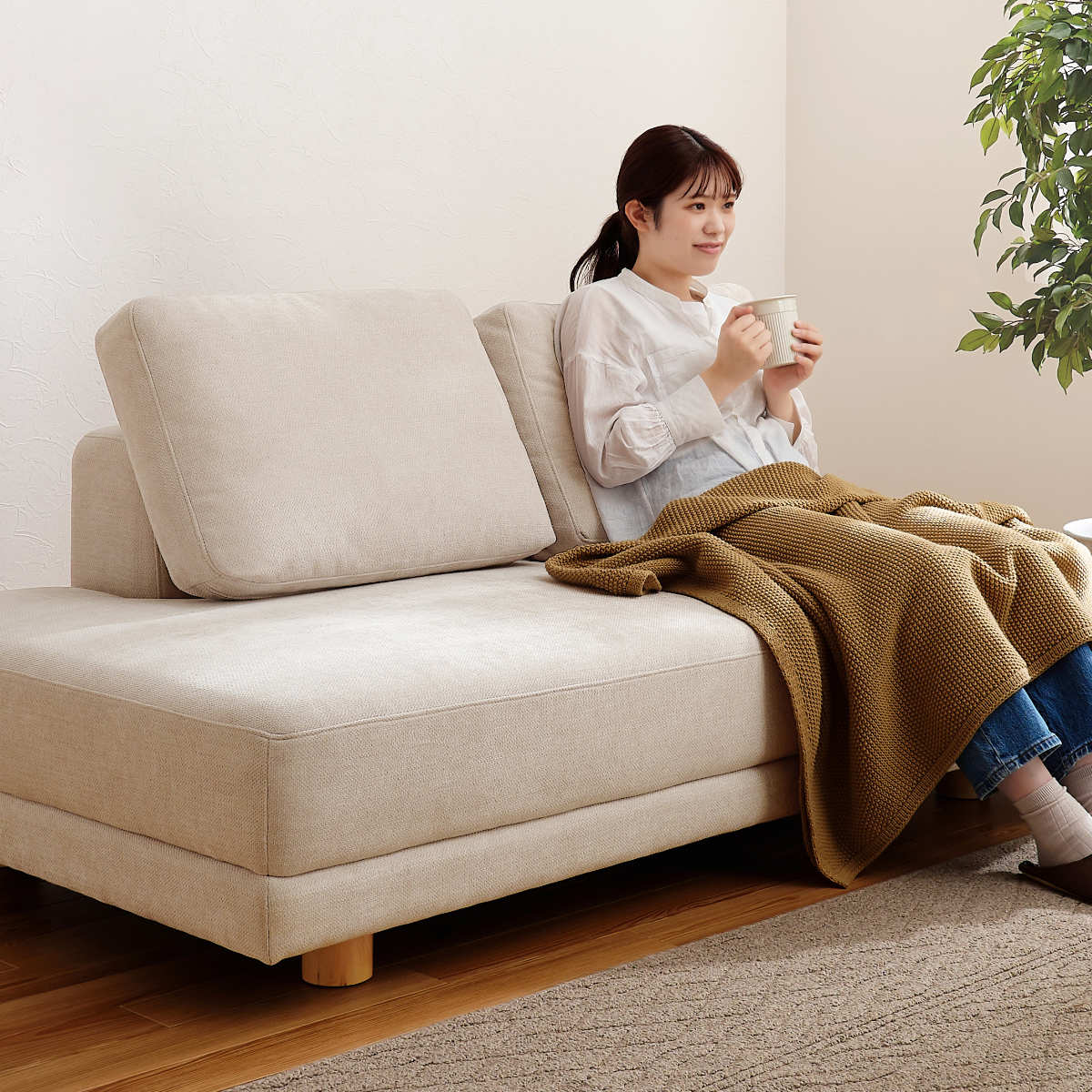 中央につなぎ目が無いワンシートタイプのソファです。座る場所や人数の制限を感じさせない仕様で、脚を伸ばしたり寝転んだりと自由にお使いいただけます。奥行は約48cmの座面なので深く腰掛けることができ、ゆったりとくつろぐことができます。