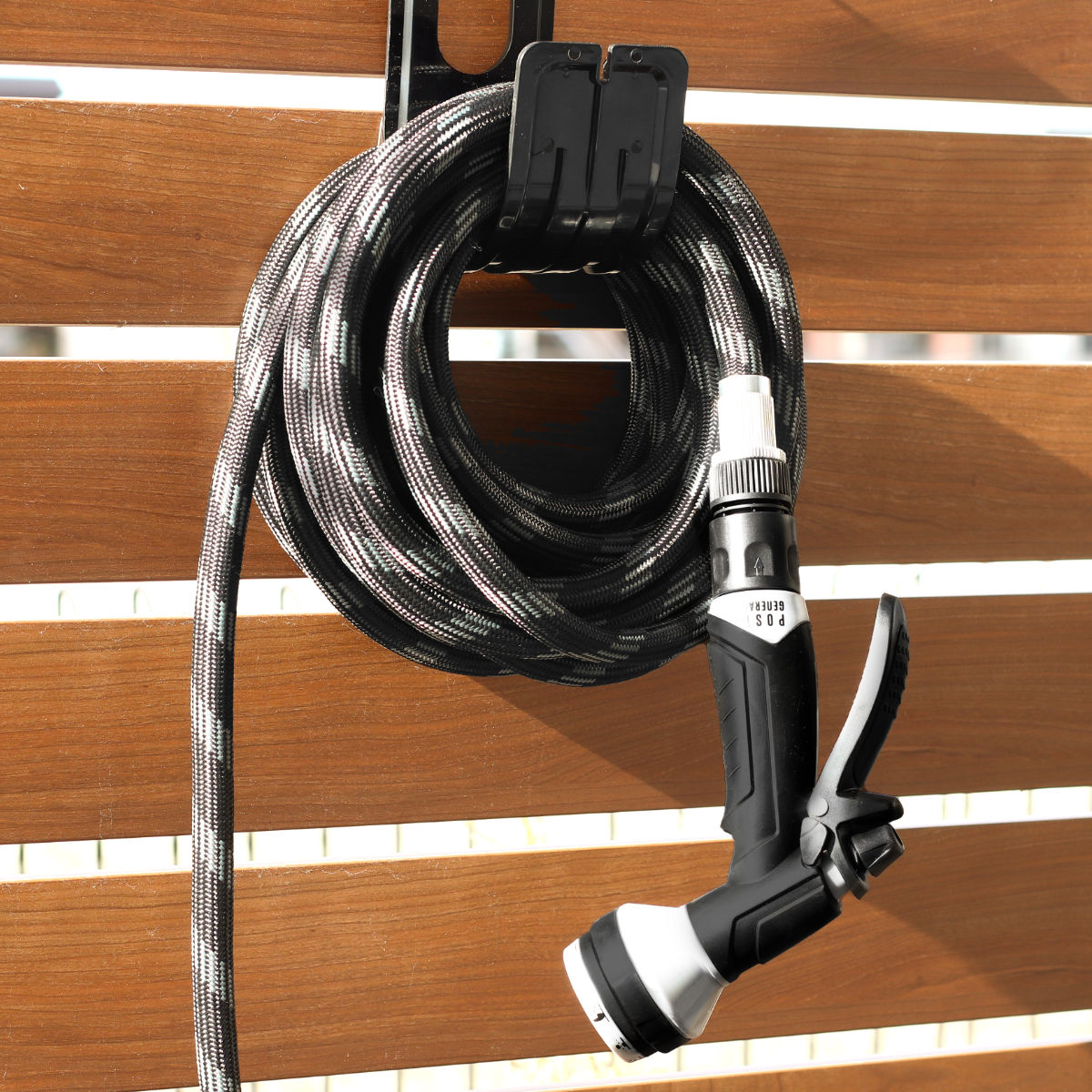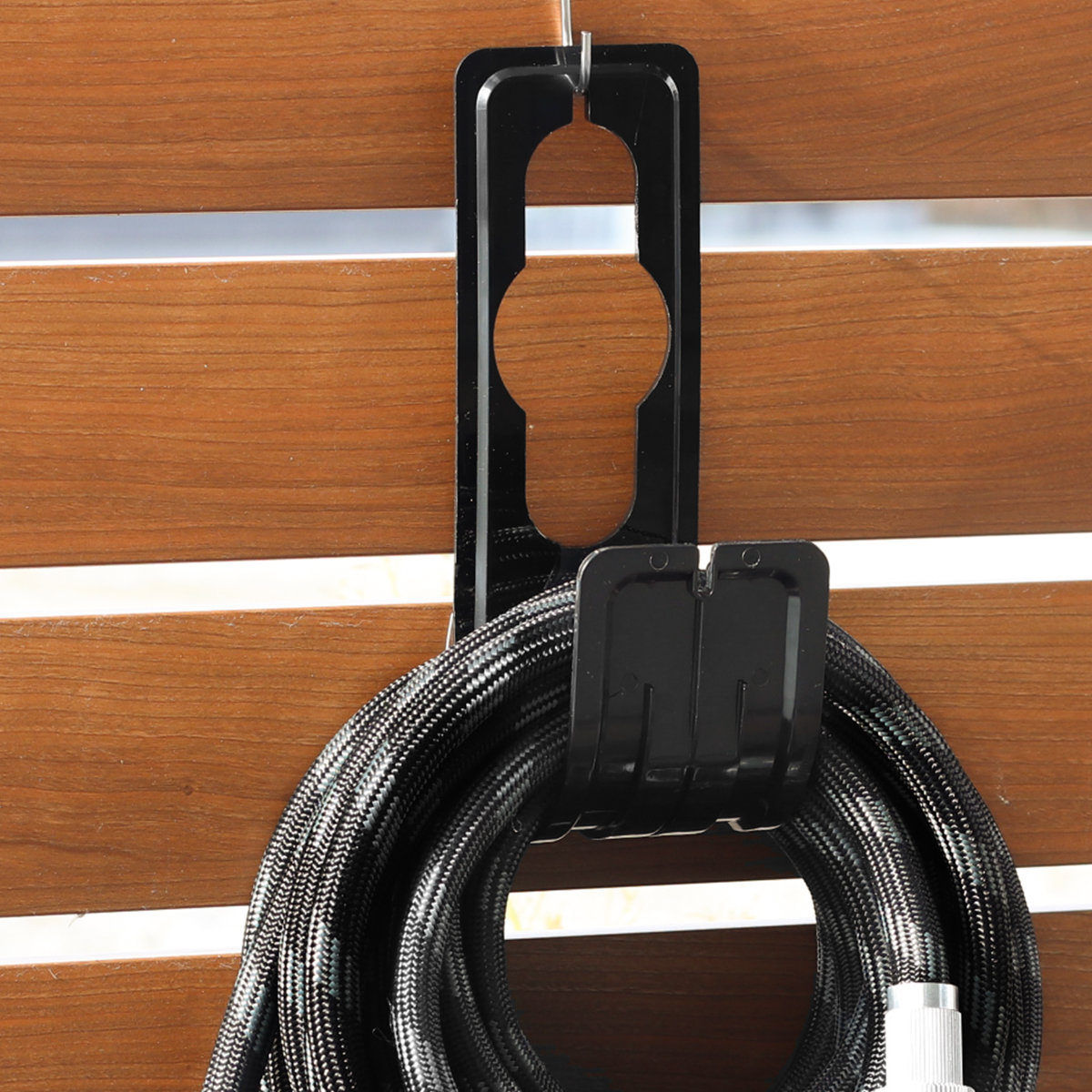 長いホースをしっかりとまとめて収納できる、ホースハンガー付きです。