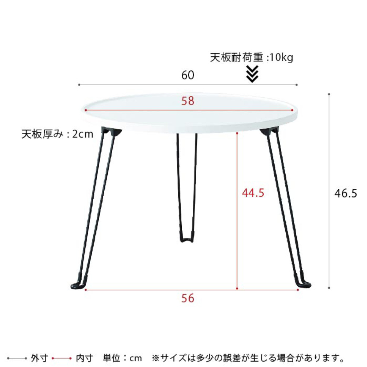 サイドテーブル 円型 直径60cm 折りたたみ セカンドサイドテーブル ( 丸 ラウンド テーブル モノトーン 白 黒 ナイトテーブル ミニテーブル ソファ ベッド 横 モダン スタイリッシュ )