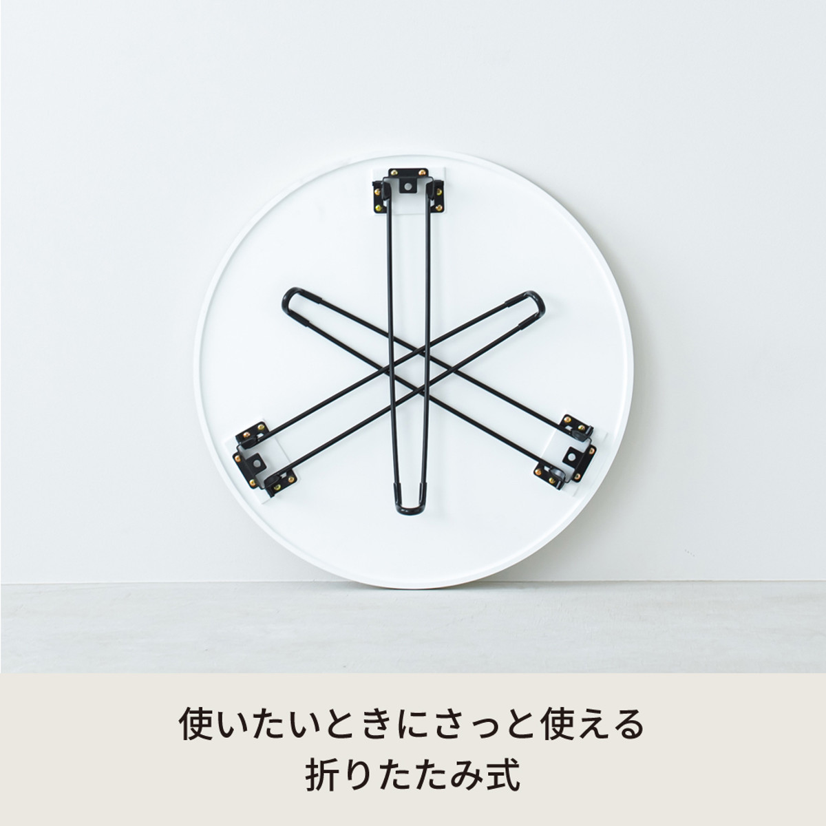 使いたい時にサッと使える折りたたみ式です。使わない時はちょっとした隙間に収納できてお部屋を広く使えます。