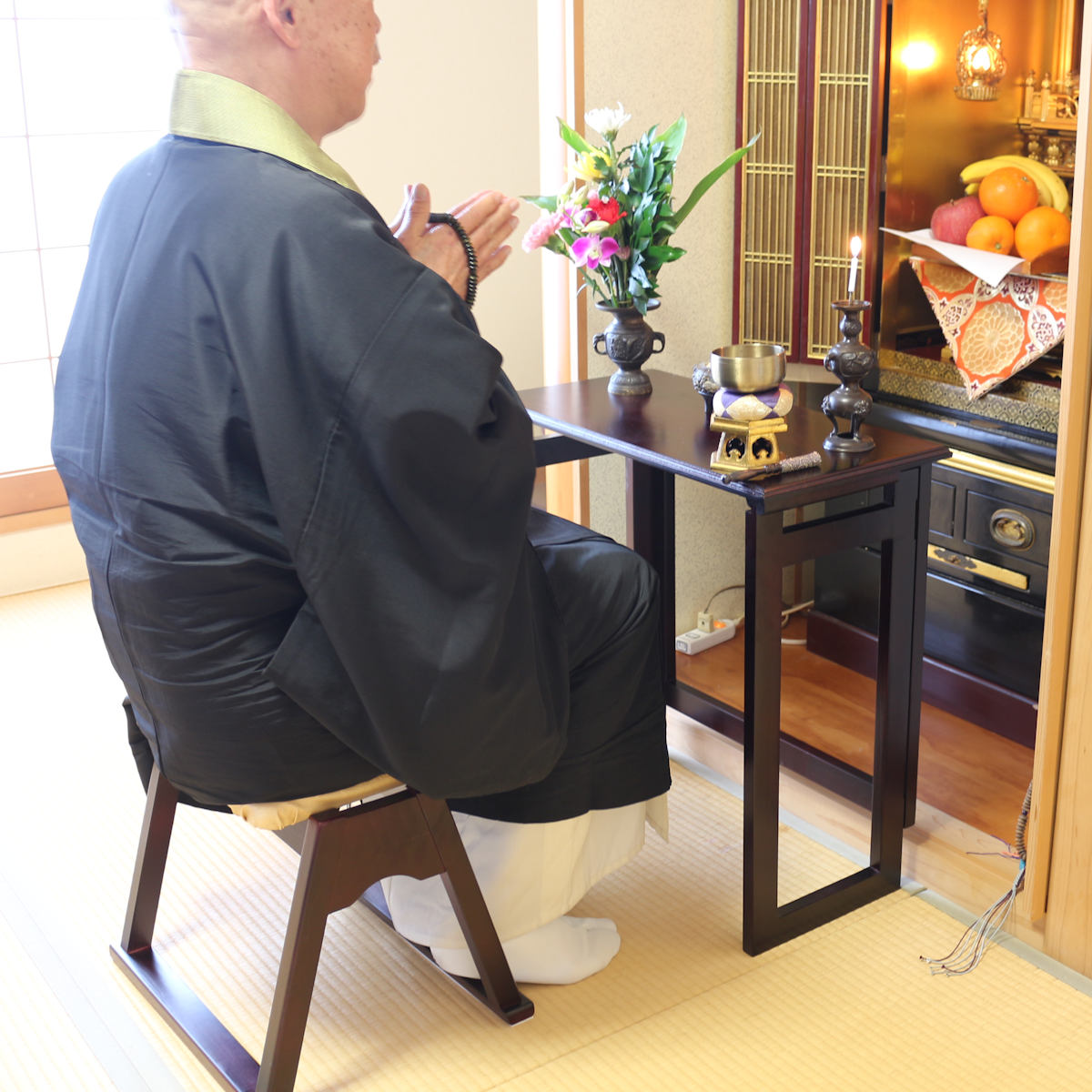 座面高さ37.5cmの椅子は、ロータイプの仏具台にもハイタイプの仏前机にも合わせてお使いいただけます。普段は玄関や寝室に置いておいて、ちょっと腰を掛けるのにも便利です。