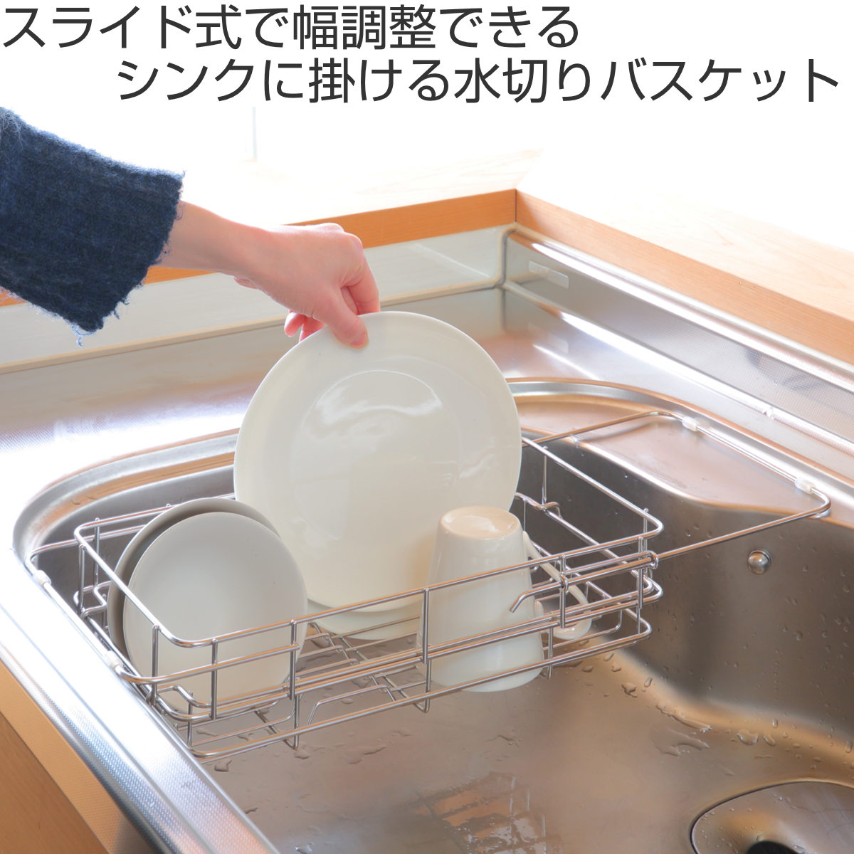 水切りカゴ &kit たためる シンク 水切りバスケット ( 水切りラック スライド式 ステンレス シンク上 水切り 一時置き 水切りトレー 伸縮 作業台 補助台 ディッシュラック コンパクト シンク掛け シンク渡し 食器 洗い )