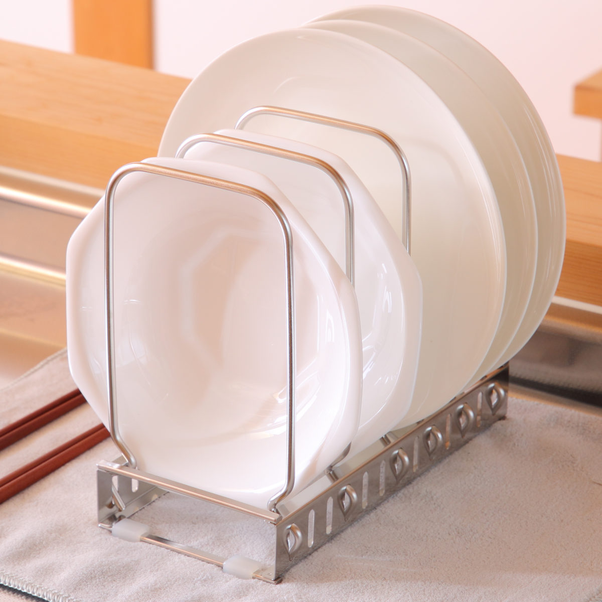 ディッシュラック &kit 調節できる ディッシュスタンド ( 食器立て 皿立て ラック ステンレス 平皿 深皿 お皿収納 シンク下 引き出し 食器棚 収納ラック 整理 システムキッチン 食洗機対応 )