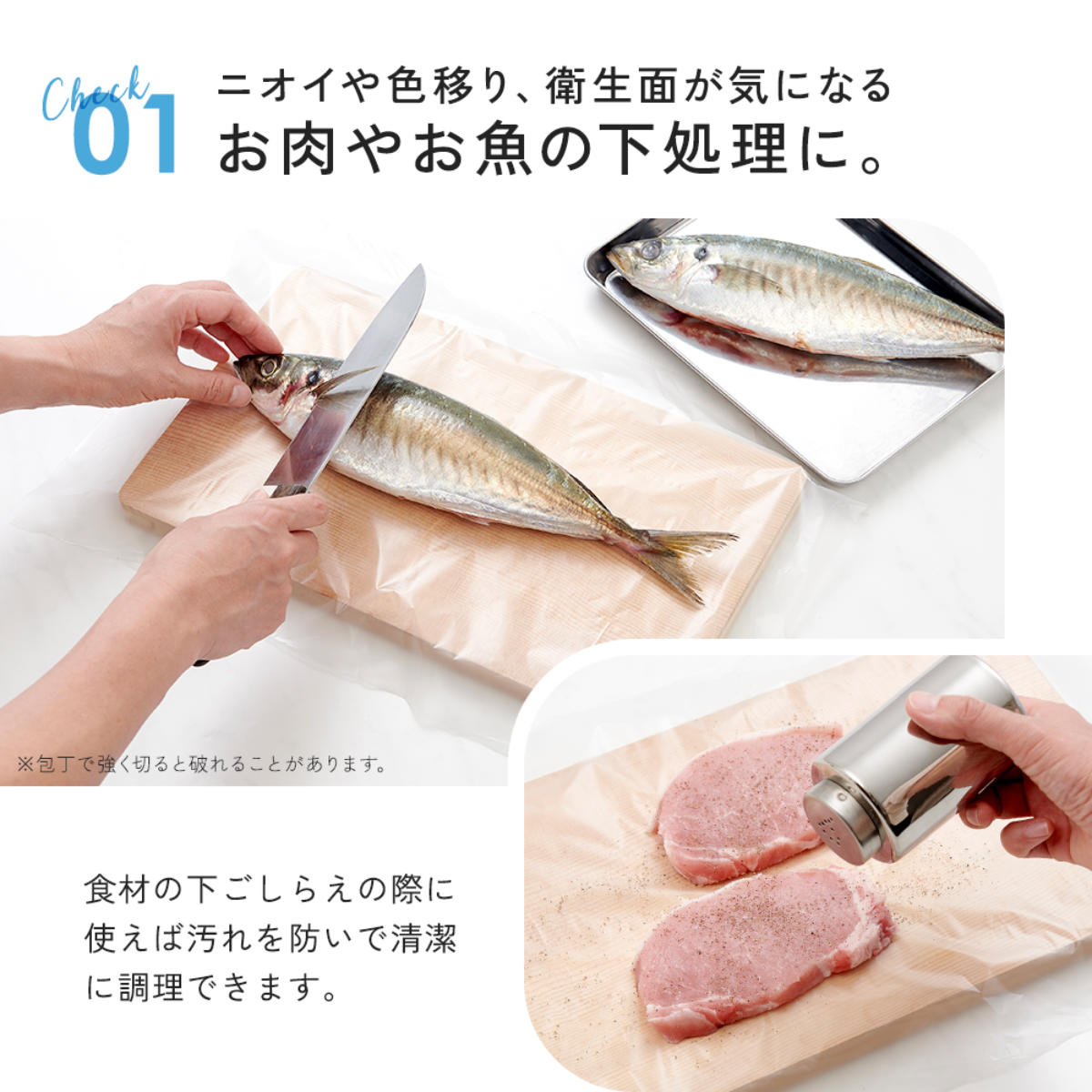 ●ニオイ・色移り・衛生面が気になる食材から、まな板の汚れを防止します。